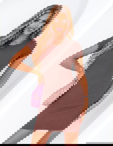 Prążkowana sukienka na krótki rękaw Selinna - mocha mousse