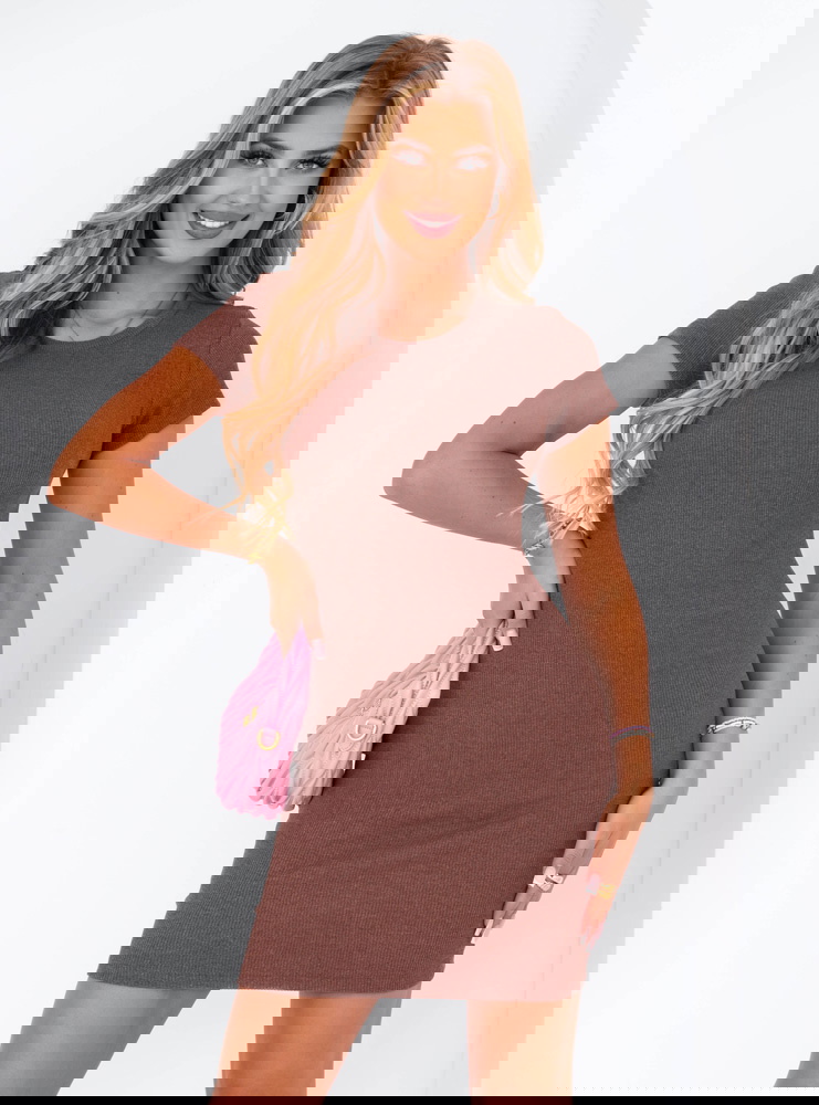 Prążkowana sukienka na krótki rękaw Selinna - mocha mousse to uniwersalny wybór, który warto mieć w swojej szafie. Jej dopasowany fason pięknie podkreśla sylwetkę, a miękki odcień dodaje stylizacji elegancji. Prosta forma daje wiele możliwości – możesz ją nosić solo lub jako część warstwowego zestawu. Świetnie komponuje się z delikatną biżuterią, kapeluszem czy okularami przeciwsłonecznymi. To model, który sprawdzi się zarówno w mieście, jak i na wakacjach. Stylowa, wygodna i łatwa w stylizacji – ta sukienka to pewny wybór. Jeśli lubisz minimalizm z nutą kobiecości, ten model będzie dla Ciebie idealny.