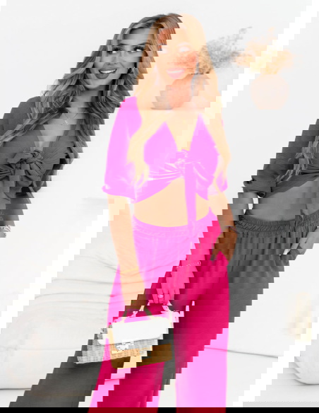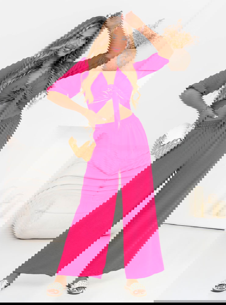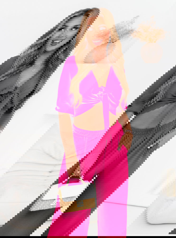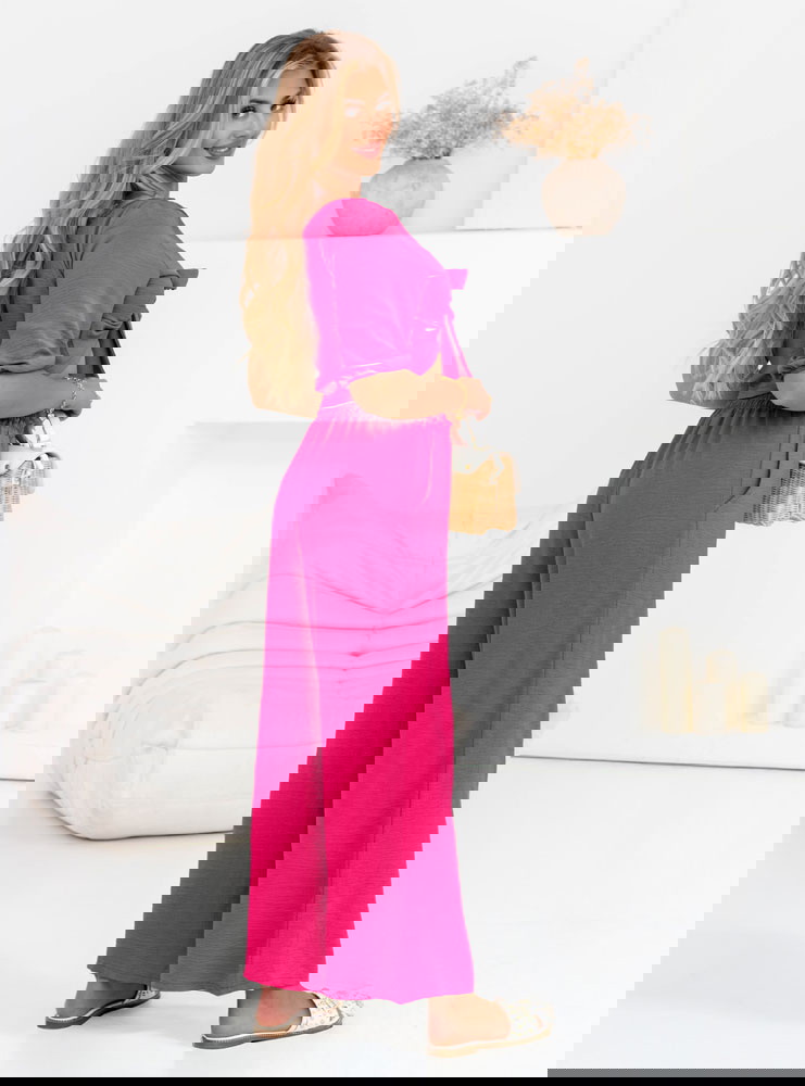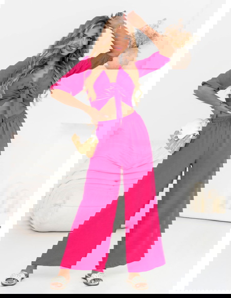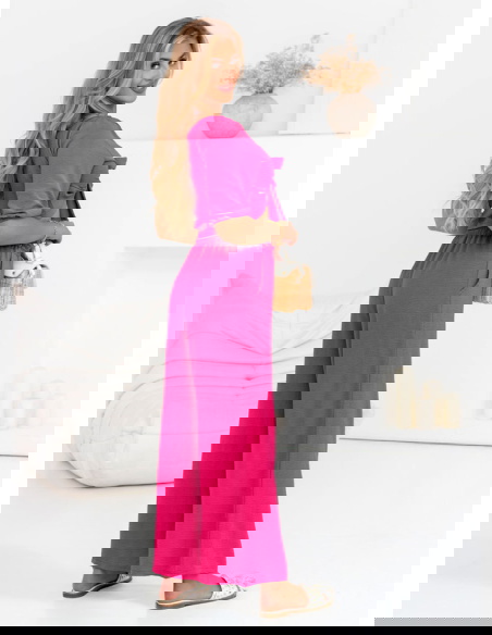 Komplet wiązany top i spodnie Ruzuna - fuksja
