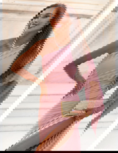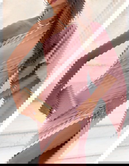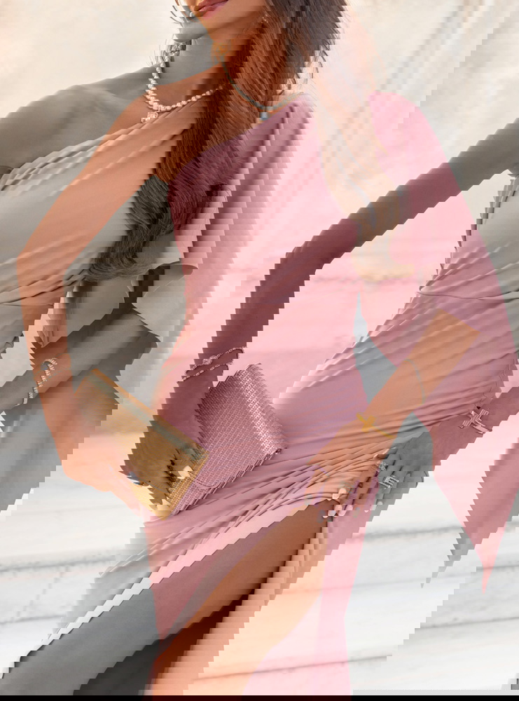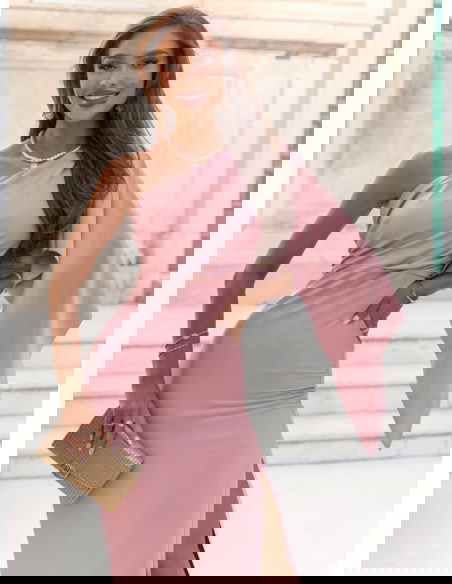Sukienka na jedno ramię z rozcięciem Proserpina - brudny róż