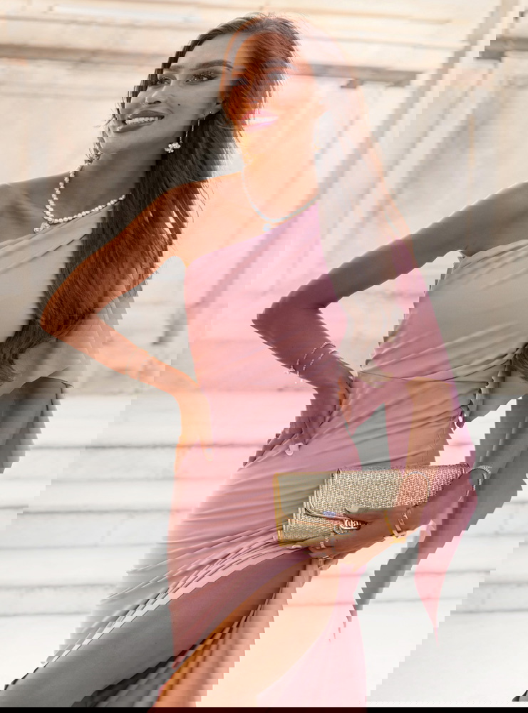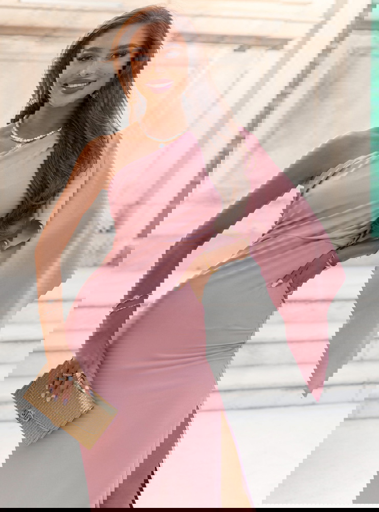Sukienka na jedno ramię z rozcięciem Proserpina - brudny róż to opcja, która łączy elegancję z wygodą. Jej lekki, opływowy krój pięknie prezentuje się w ruchu. Asymetryczne ramię i ozdobny element nadają jej niebanalnego charakteru. To sukienka, po którą sięgniesz nie tylko raz. Z łatwością dopasujesz ją do różnych okazji – od letnich imprez po eleganckie wieczory. Jest stylowa, ale nie przytłacza. Jeśli szukasz czegoś wyjątkowego, ale nienachalnego – ta sukienka spełni Twoje oczekiwania.