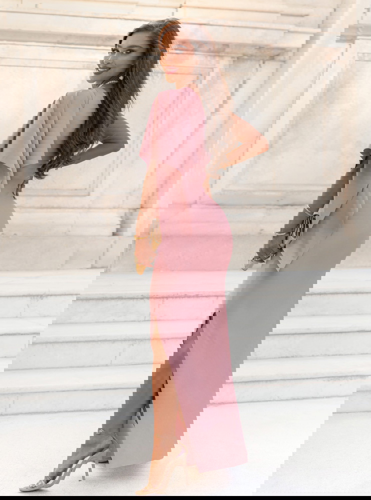 Sukienka na jedno ramię z rozcięciem Proserpina - brudny róż to propozycja, która zachwyca swoją lekkością i kobiecym charakterem. To ten typ sukienki, który sprawia, że od razu czujesz się pewniej i bardziej wyjątkowo. Kolor brudnego różu jest subtelny, romantyczny i bardzo stylowy – doskonale pasuje do każdego typu urody. Asymetryczny dekolt i ozdobne, długie wiązanie na ramieniu dodają całości eleganckiego wyrazu. Sukienka pięknie układa się na sylwetce, podkreślając jej linię, ale bez efektu przesady. Długość maxi w połączeniu z delikatnym rozcięciem zapewnia swobodę ruchu i lekko zmysłowy charakter. To stylizacja, która nie wymaga wielu dodatków – sama w sobie robi wrażenie. Każdy detal jest tu przemyślany i nadaje sukience niepowtarzalnego uroku. To kreacja idealna dla kobiet, które chcą wyglądać stylowo i czuć się swobodnie. Sprawdzi się zarówno na wyjątkowe okazje, jak i wtedy, gdy po prostu chcesz wyglądać pięknie.