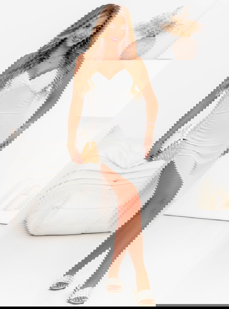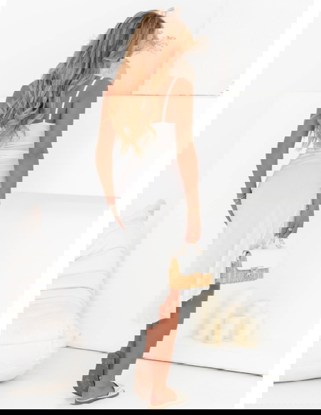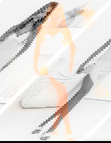 Biała sukienka na ramiączkach z rozcięciem Chasya