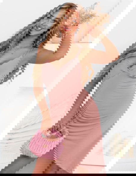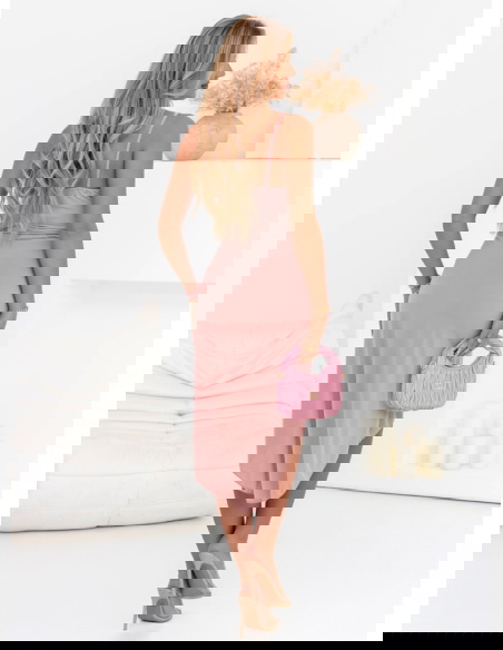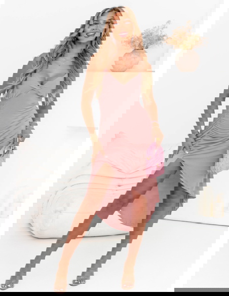 Pudrowa sukienka na ramiączkach z rozcięciem Chasy