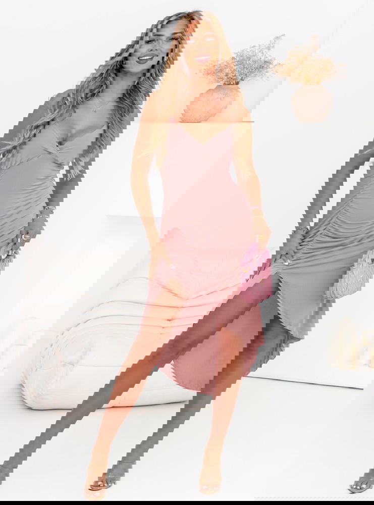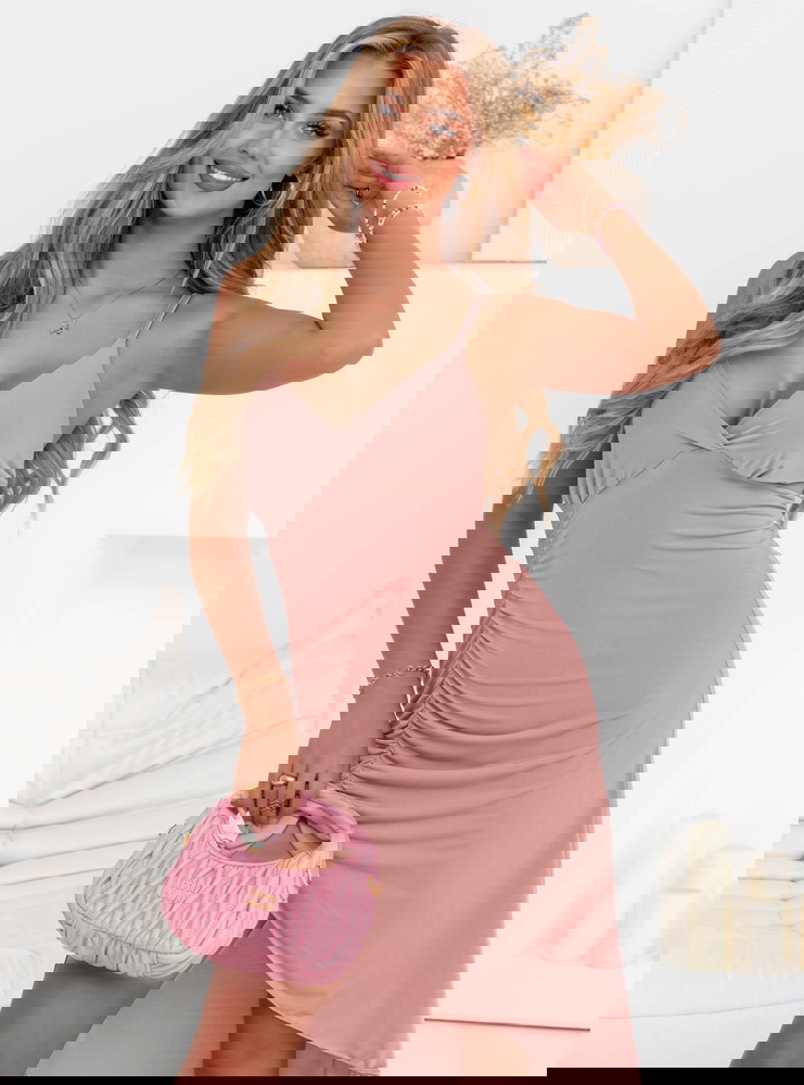 Pudrowa sukienka na ramiączkach z rozcięciem Chasy to model, który możesz założyć wiele razy, za każdym razem stylizując go inaczej. Sprawdzi się zarówno w wakacyjnej walizce, jak i podczas spontanicznych wyjść w mieście. Jest lekka, wygodna i ponadczasowa. Kolor brudnego różu pięknie podkreśla opaleniznę i pasuje do wszystkiego. To sukienka, która wygląda dobrze bez wysiłku – po prostu wkładasz i jesteś gotowa.