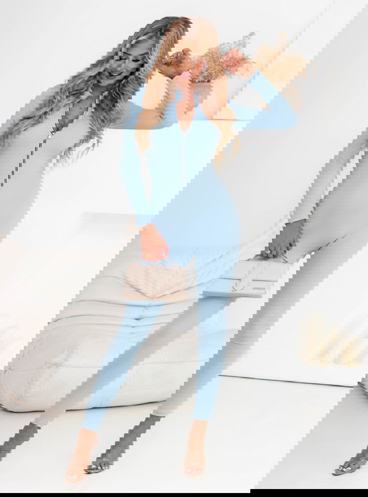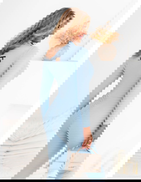 Błękitny dopasowany kombinezon z suwakiem Makeba to idealna propozycja dla kobiet, które lubią nowoczesny i kobiecy styl. Subtelny kolor błękitu sprawia, że całość wygląda świeżo, delikatnie i lekko. To fason, który od razu przyciąga uwagę i podkreśla sylwetkę. Kombinezon jest jednocześnie zmysłowy i komfortowy, dzięki czemu zyskuje coraz więcej fanek. Zamek z przodu to nie tylko praktyczny element, ale też detal nadający charakteru całej stylizacji. Dzięki niemu możesz decydować, jak głęboki ma być dekolt – od casualowego po bardziej koktajlowy look. Długi rękaw i dopasowane nogawki tworzą smukłą linię ciała, która prezentuje się wyjątkowo kobieco. To ubranie, które świetnie sprawdzi się zarówno w codziennych sytuacjach, jak i na specjalne okazje. Jego minimalistyczna forma daje wiele możliwości stylizacji. Makeba to model, który naprawdę warto mieć w swojej garderobie – niezawodny, modny i po prostu piękny.