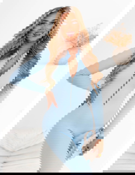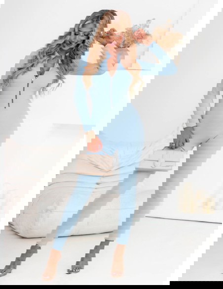 Błękitny dopasowany kombinezon z suwakiem Makeba