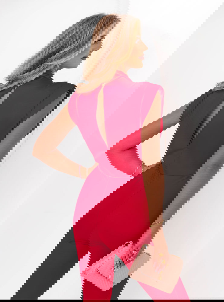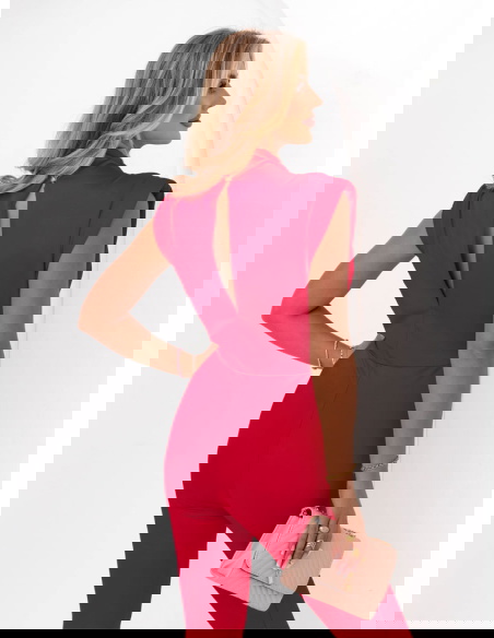 Malinowy dopasowany kombinezon bez rękawów Sayako
