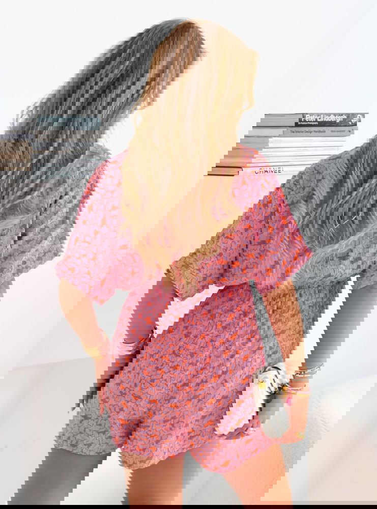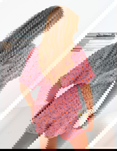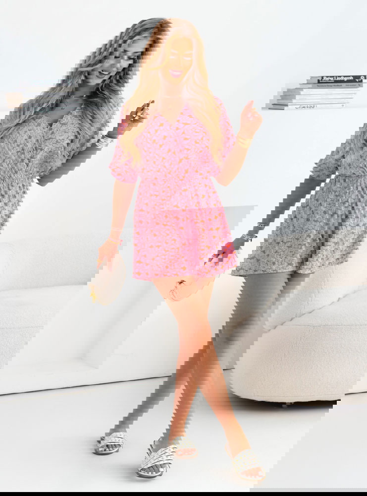 Muślinowy kombinezon z przekładanym dekoltem Trezza to wyjątkowa propozycja, która przyciąga wzrok już od pierwszego spojrzenia. Kobiecy, lekki i niezwykle stylowy – idealny na sezon wiosna-lato. Przyciągający wzrok wzór w odcieniach różu i pomarańczu dodaje energii i sprawia, że każda stylizacja zyskuje charakteru. Przekładany dekolt pięknie podkreśla linię biustu, a elastyczna talia akcentuje figurę bez uczucia ucisku. Krótkie nogawki dodają mu letniego luzu i świeżości. Luźny fason zapewnia komfort i swobodę ruchów na każdym kroku. To opcja, która pozwala poczuć się modnie, ale bez przesadnej formalności. Styl boho spotyka się tu z miejskim szykiem – tworząc duet idealny. Będzie pasować zarówno na co dzień, jak i na specjalniejsze okazje. Ten kombinezon to gotowa stylizacja, której nie musisz długo planować.
