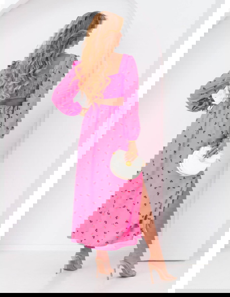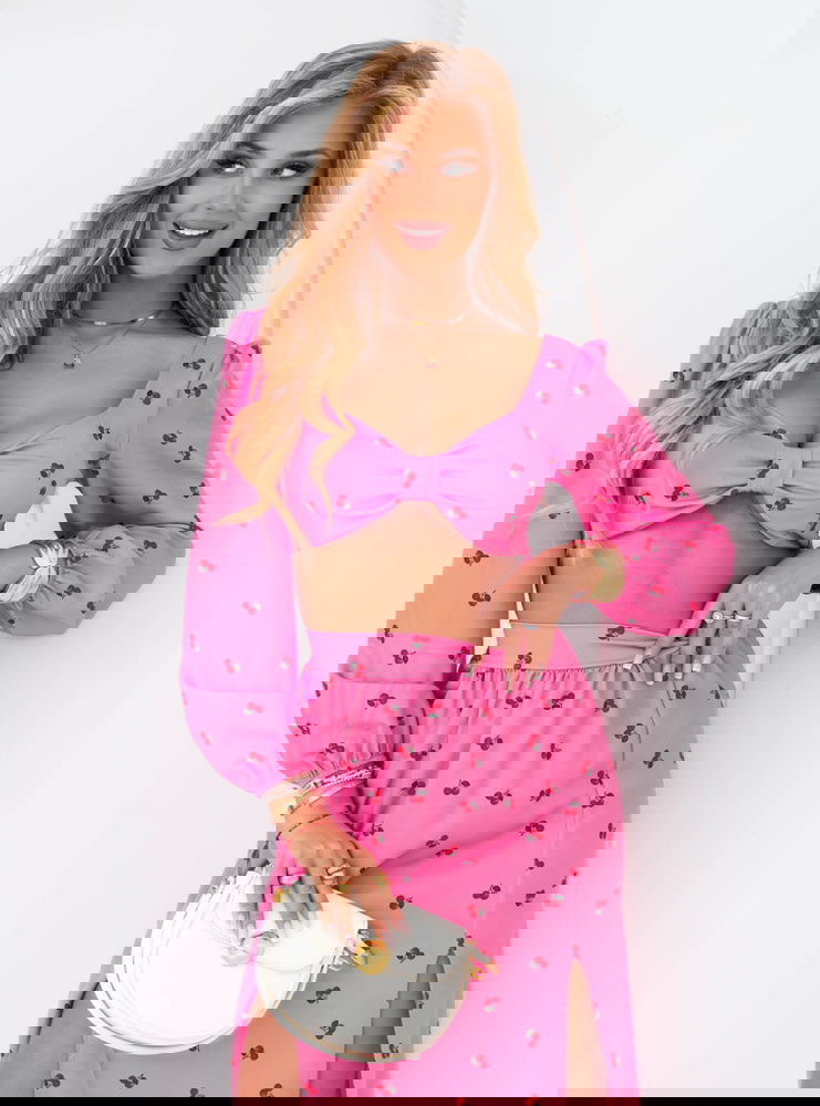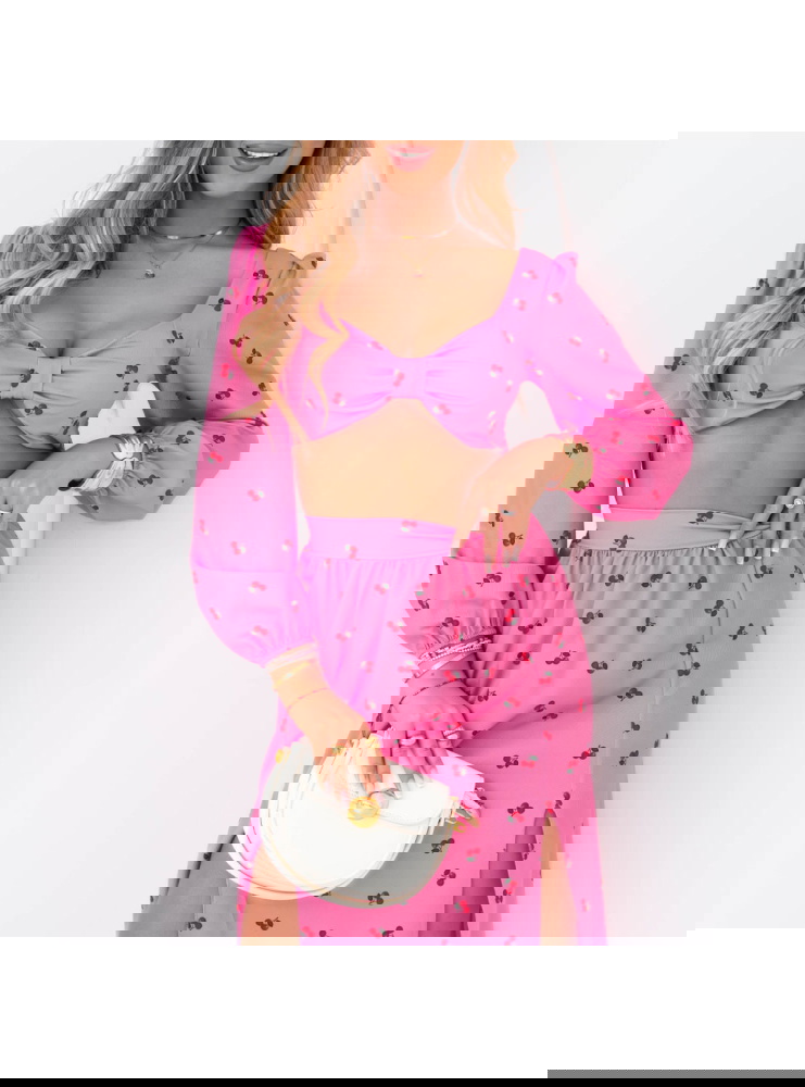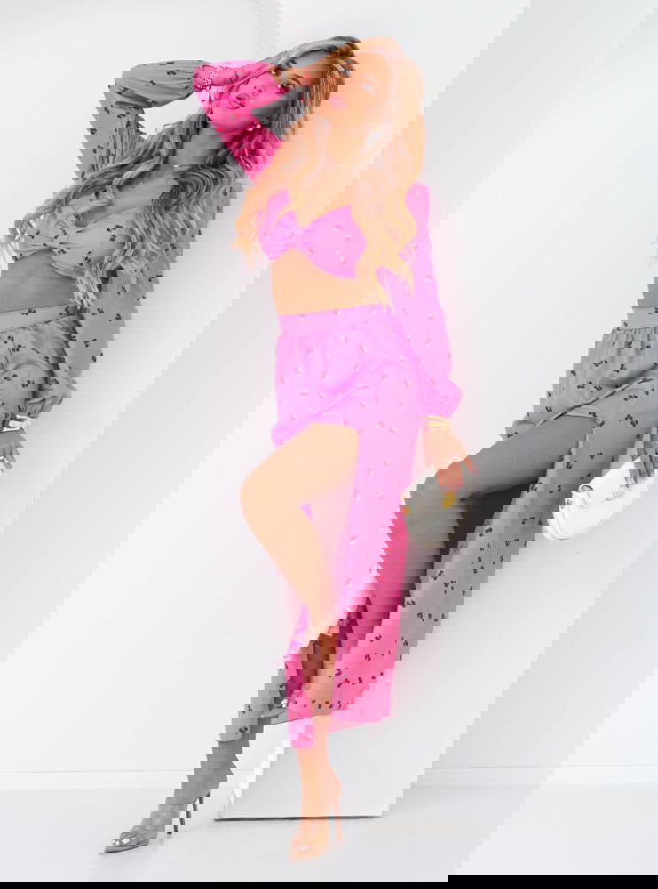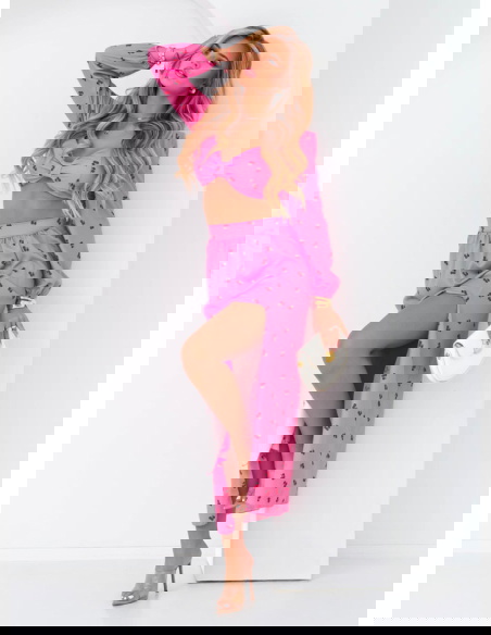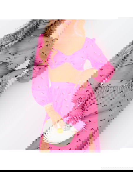 Komplet krótki top i spódnica z rozcięciami Shonel - fuksja