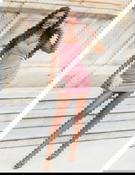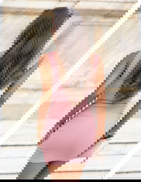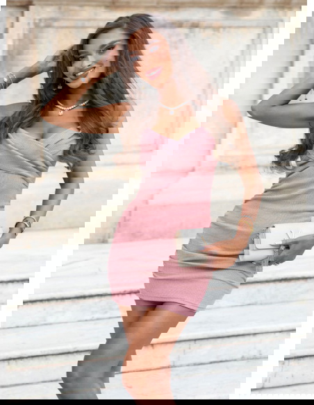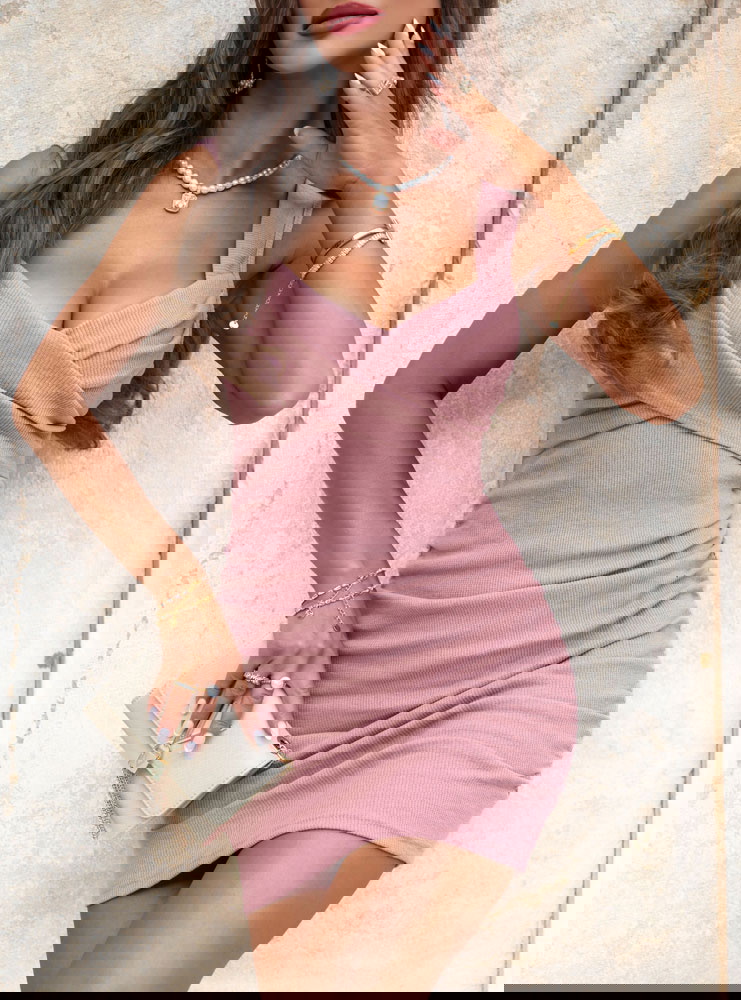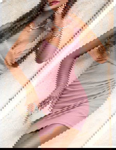 Prążkowana sukienka na ramiączkach Itria - brudny róż