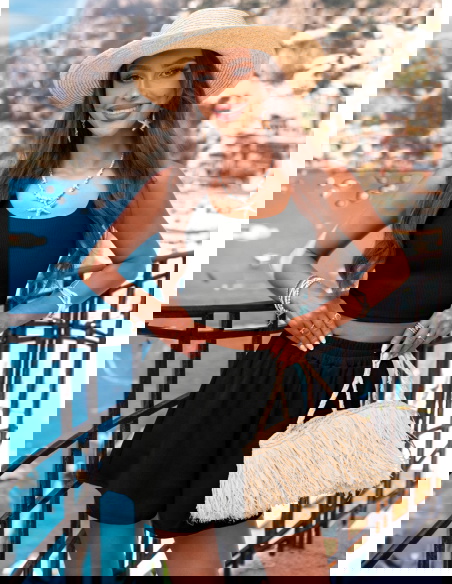 Czarny prążkowany komplet top i spodenki Karminna to świetny wybór na wakacyjny wyjazd, dzień na plaży, spacer promenadą czy wypad na lody z przyjaciółkami. Równie dobrze sprawdzi się jako luźna, stylowa stylizacja na miejski dzień. Wystarczy dobrać lekką torebkę, kapelusz i klapki – i gotowe! Idealnie sprawdza się też podczas aktywności na świeżym powietrzu lub jako modna opcja na garden party. To zestaw, który zawsze daje uczucie swobody i pewności siebie.