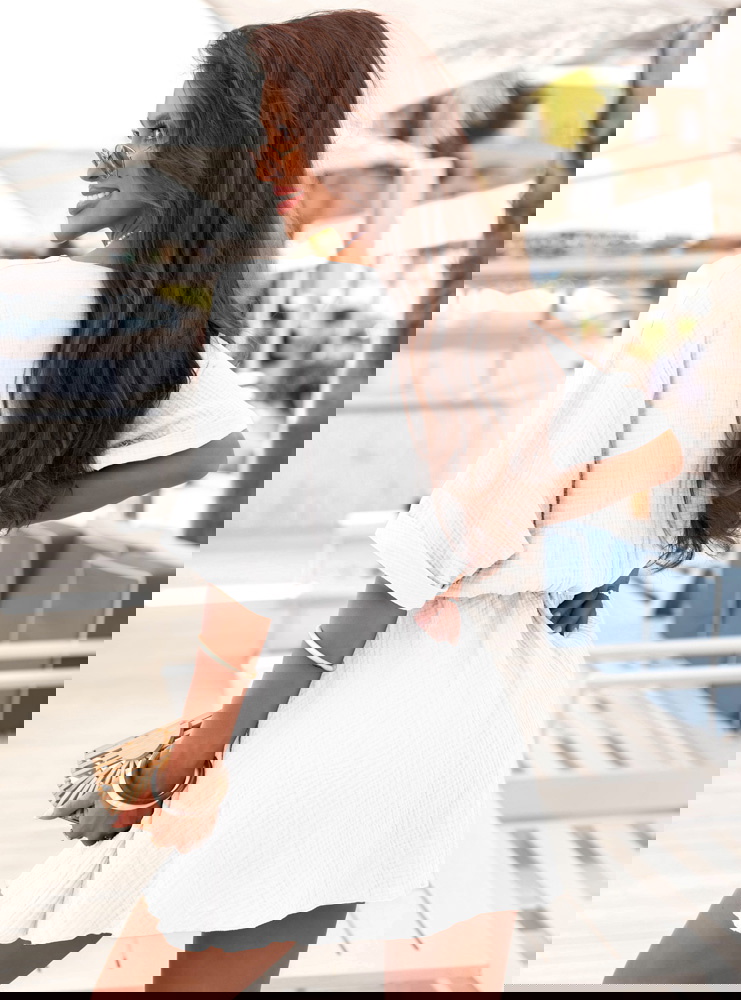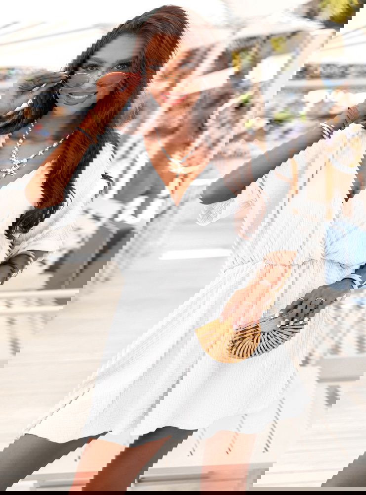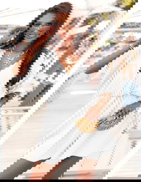 Biały muślinowy kombinezon z przekładanym dekoltem Citina