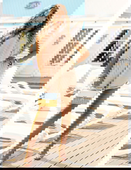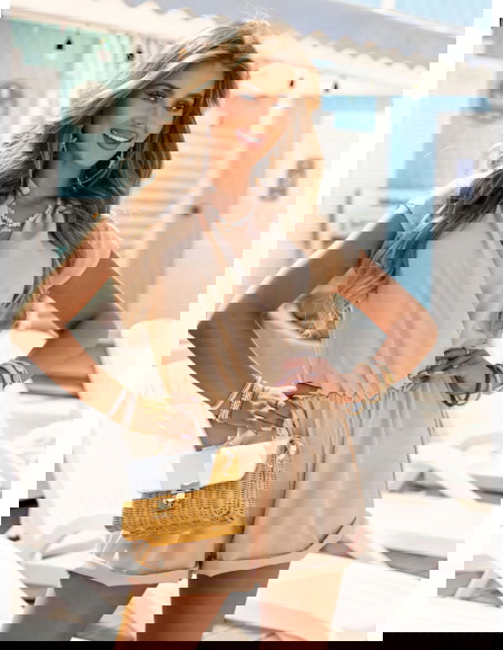Beżowy kombinezon z przekładanym dekoltem Promita to kwintesencja letniego szyku z nutą niewymuszonej elegancji. Łączy wygodę noszenia z pięknym, kobiecym fasonem. Beżowy kolor świetnie podkreśla naturalną urodę i pasuje do każdego typu dodatków. Przekładany dekolt i elastyczna talia pozwalają poczuć się swobodnie i atrakcyjnie. To idealna baza dla wielu stylizacji – od plażowych po bardziej wyjściowe. Z nim w szafie zawsze będziesz miała gotowy strój „na już”, który nie wymaga wiele, by wyglądać świetnie. Ten kombinezon to absolutny hit na lato – lekki, kobiecy i niezwykle praktyczny.
