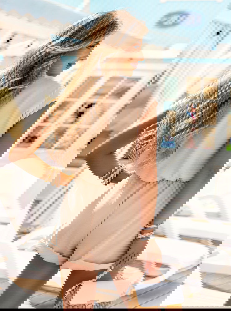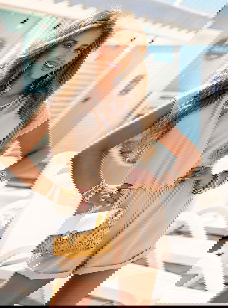 Beżowy kombinezon z przekładanym dekoltem Promita to doskonały wybór na ciepłe dni, kiedy chcesz wyglądać stylowo, ale czuć się w pełni swobodnie. Jego lekki, kobiecy krój sprawia, że świetnie sprawdza się zarówno na co dzień, jak i przy bardziej stylizowanych okazjach. Przekładany dekolt w kształcie litery V subtelnie wydłuża szyję i wysmukla sylwetkę, podkreślając kobiece atuty z wyczuciem. Krótkie nogawki z zawinięciem i delikatnie zaznaczona talia nadają całości dziewczęcego uroku. Ten kombinezon to idealna alternatywa dla klasycznej sukienki – wygląda lekko i świeżo, a przy tym nie musisz się martwić o wygodę. Beżowy odcień doskonale współgra z letnią opalenizną i daje nieograniczone możliwości stylizacyjne. Założysz go do jasnych sandałów, plecionej torebki lub bardziej eleganckich dodatków. To model, który z łatwością dopasujesz do swojego stylu i nastroju. Świetnie prezentuje się w ruchu i pięknie układa na sylwetce. To must-have w wakacyjnej garderobie każdej kobiety, która ceni luz w eleganckim wydaniu.