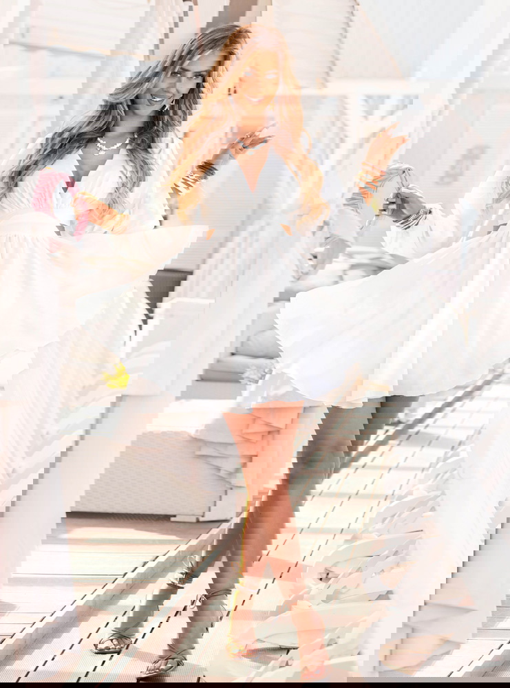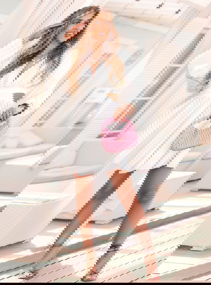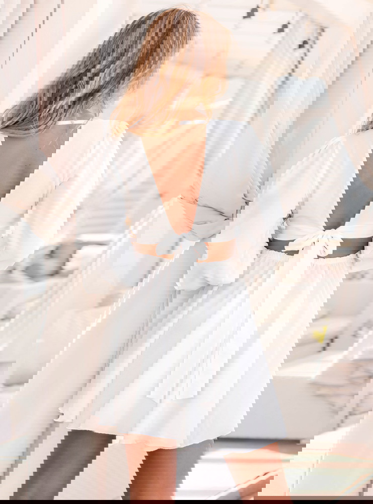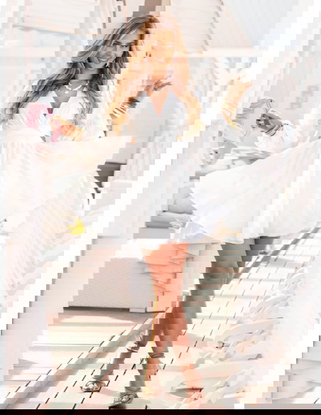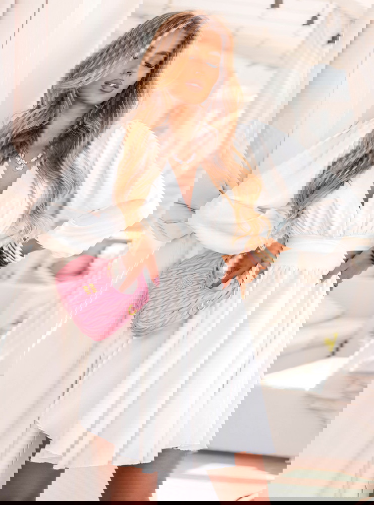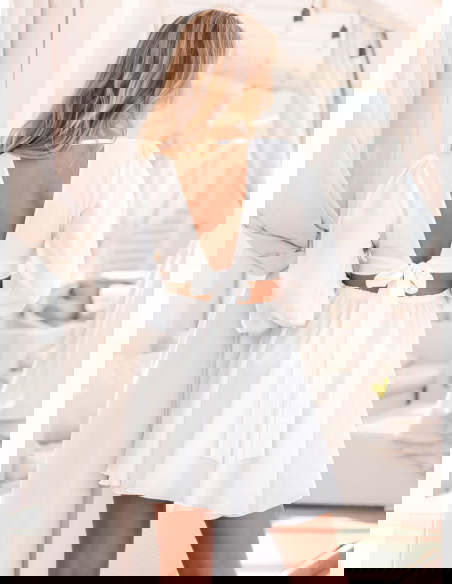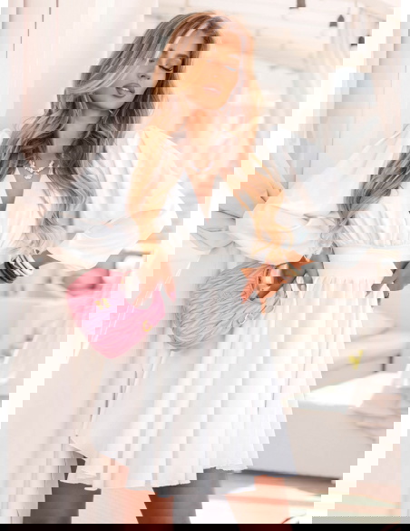 Biała sukienka rozkloszowana z wycięciem Nevish to kwintesencja letniego szyku i kobiecego wdzięku. Przyciąga spojrzenia swoją elegancją, ale nie narzuca się – jest lekka, subtelna i efektowna zarazem. To jeden z tych modeli, który sprawia, że czujesz się wyjątkowo już od pierwszego założenia. Zwiewny krój pięknie układa się w ruchu, a delikatne wycięcie dodaje stylizacji pazura. Głęboki dekolt podkreśla kobiecy charakter sukienki, nie tracąc przy tym na klasie. Długie rękawy w kontrze do krótszego dołu tworzą ciekawy balans i dodają elegancji. To idealna propozycja na ciepłe dni, kiedy chcesz wyglądać szykownie, ale z lekkością. Pasuje zarówno do delikatnych sandałków, jak i bardziej wyrazistych dodatków. Dzięki niej bez wysiłku stworzysz look, który przyciąga spojrzenia. Ten fason to nowoczesna klasyka z nutą letniego romantyzmu.