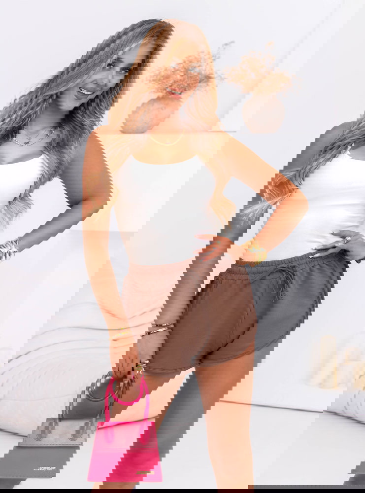 Krótkie spodenki dresowe Eldece - mocha mousse to idealna propozycja dla kobiet, które cenią sobie wygodę w stylowym wydaniu. Ich subtelny, ciepły odcień brązu wnosi do codziennych stylizacji nutę elegancji. To model, który łączy luźny, swobodny fason z kobiecym charakterem. Świetnie sprawdza się w każdej sytuacji – zarówno w domowym zaciszu, jak i podczas wakacyjnych spacerów. Krój podkreśla sylwetkę, nie opinając jej, a elastyczna talia z wiązaniem dodaje lekkości i dopasowania. Ten odcień mocha mousse to nowoczesna alternatywa dla klasycznych kolorów, idealna na letnie dni. Spodenki możesz zestawić z oversizowym topem, dopasowanym body lub stylowym cropem. Nadają się do sneakersów, klapek czy nawet sandałków – tworząc casualowe i bardziej kobiece zestawy. Ich wygoda sprawia, że trudno będzie się z nimi rozstać. Jeśli szukasz kompromisu między stylem a komfortem – właśnie go znalazłaś.