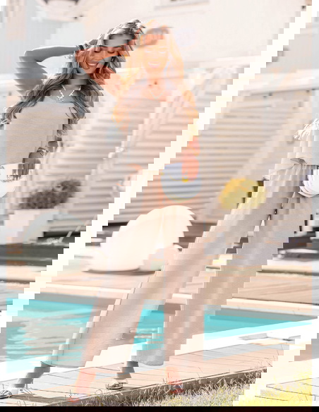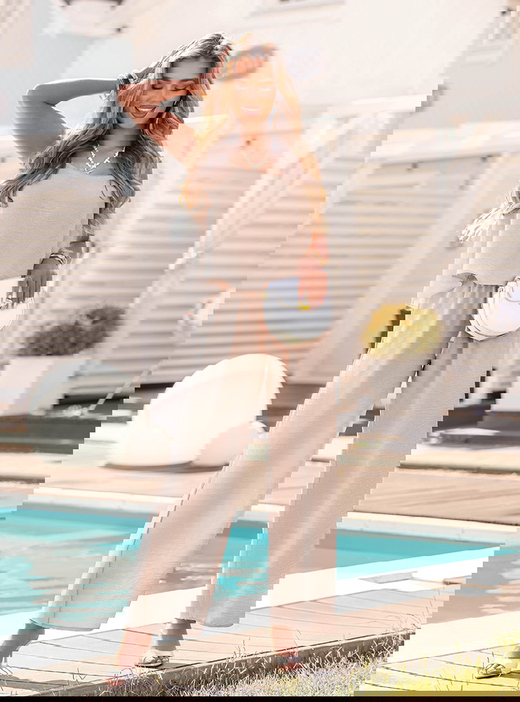 Beżowy komplet bluzka i spodnie Citlalmina to kwintesencja kobiecej lekkości w wakacyjnym wydaniu. Ten zestaw łączy w sobie luz, subtelny szyk i wyjątkową wygodę. To idealna propozycja dla kobiet, które cenią styl, ale nie chcą rezygnować z komfortu. Beżowy kolor sprawia, że całość wygląda bardzo elegancko, ale też ponadczasowo i naturalnie. Komplet tworzy harmonijną całość, ale każdy z elementów możesz wykorzystać osobno – to duży atut. Luźna bluzka z delikatnie opadającym fasonem i spodnie z szerokimi nogawkami świetnie współgrają ze sobą, tworząc nowoczesną sylwetkę. Stylizacja jest bardzo kobieca, ale nieprzekombinowana – idealna na słoneczne dni i ciepłe wieczory. To komplet, który daje poczucie swobody, ale jednocześnie wygląda bardzo stylowo. Wystarczy dobrać sandały lub espadryle, by stworzyć pełen look w zaledwie chwilę. Jeśli szukasz zestawu, który sprawdzi się w wielu sytuacjach – ten model będzie strzałem w dziesiątkę.