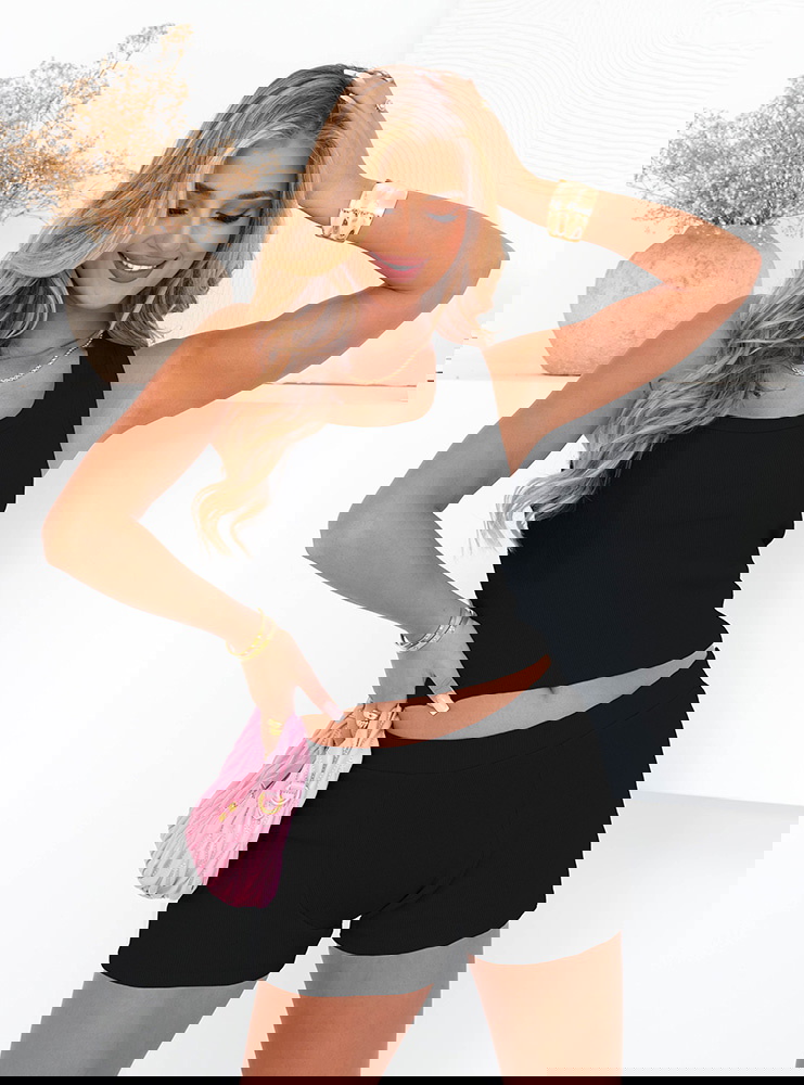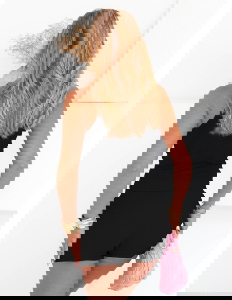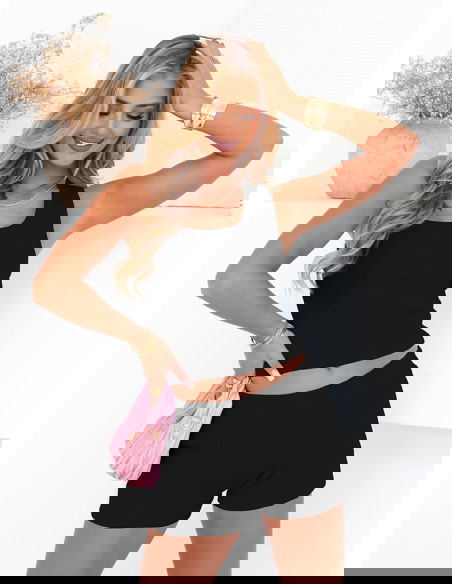 Czarny komplet top ze spodenkami Goro to kwintesencja kobiecego minimalizmu w codziennym, letnim wydaniu. Stylowy, a zarazem niesamowicie wygodny – sprawdzi się w wielu sytuacjach. Prosty fason podkreśla sylwetkę, ale nie przytłacza. Dzięki klasycznej czerni całość prezentuje się bardzo nowocześnie i elegancko. Ten zestaw pokochasz za jego uniwersalność – możesz nosić go razem lub osobno. Top z cienkimi ramiączkami dodaje lekkości i pięknie eksponuje ramiona, natomiast spodenki zapewniają pełen komfort ruchu. To świetny wybór na aktywny dzień, ale i na spokojne chwile relaksu. Zestaw idealnie wpisuje się w klimat letnich dni i wieczorów.