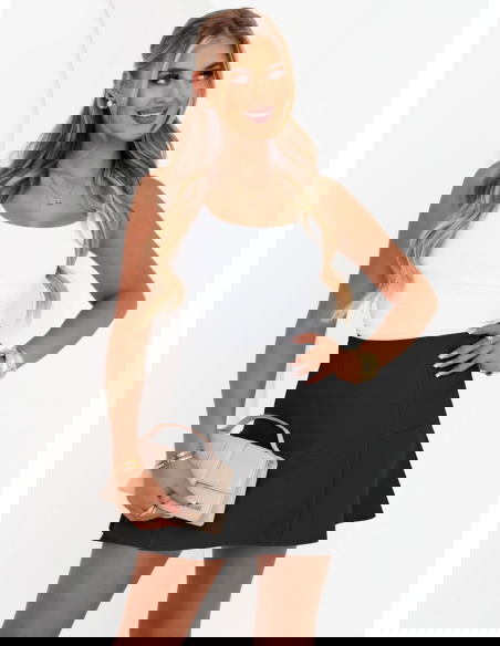 Czarna rozkloszowana spódniczka mini Marlell to klasyka, która nigdy nie wychodzi z mody. Jej ponadczasowy kolor sprawia, że idealnie pasuje do każdej okazji i każdego stylu. Rozkloszowany fason pięknie układa się w ruchu, dodając sylwetce lekkości i dziewczęcego wdzięku. To model, który świetnie podkreśla talię, a jednocześnie pozostawia swobodę. Czarna spódniczka to baza, którą wystylizujesz na wiele sposobów – od eleganckiego looku po codzienną, miejską stylizację. Z łatwością dopasujesz do niej top, koszulę, a nawet krótką bluzę. Długość mini subtelnie eksponuje nogi, zachowując przy tym komfort i naturalny luz. To idealny wybór dla kobiet, które cenią prostotę z nutą szyku. Czarny kolor to gwarancja uniwersalności, ale również elegancji i pewności siebie. Ta spódniczka to niezastąpiony element garderoby – niezależnie od pory roku czy okazji.