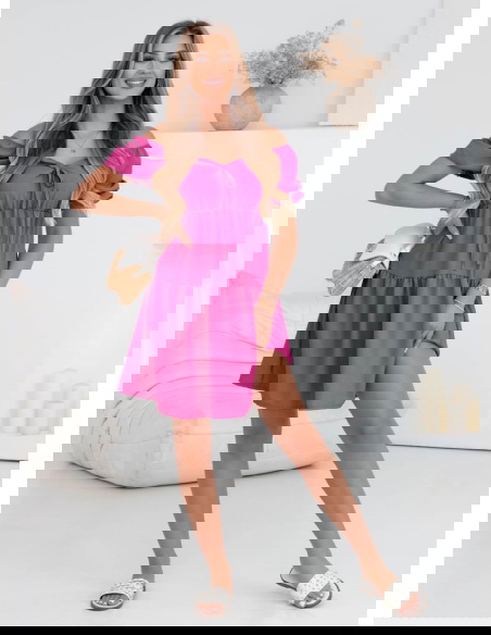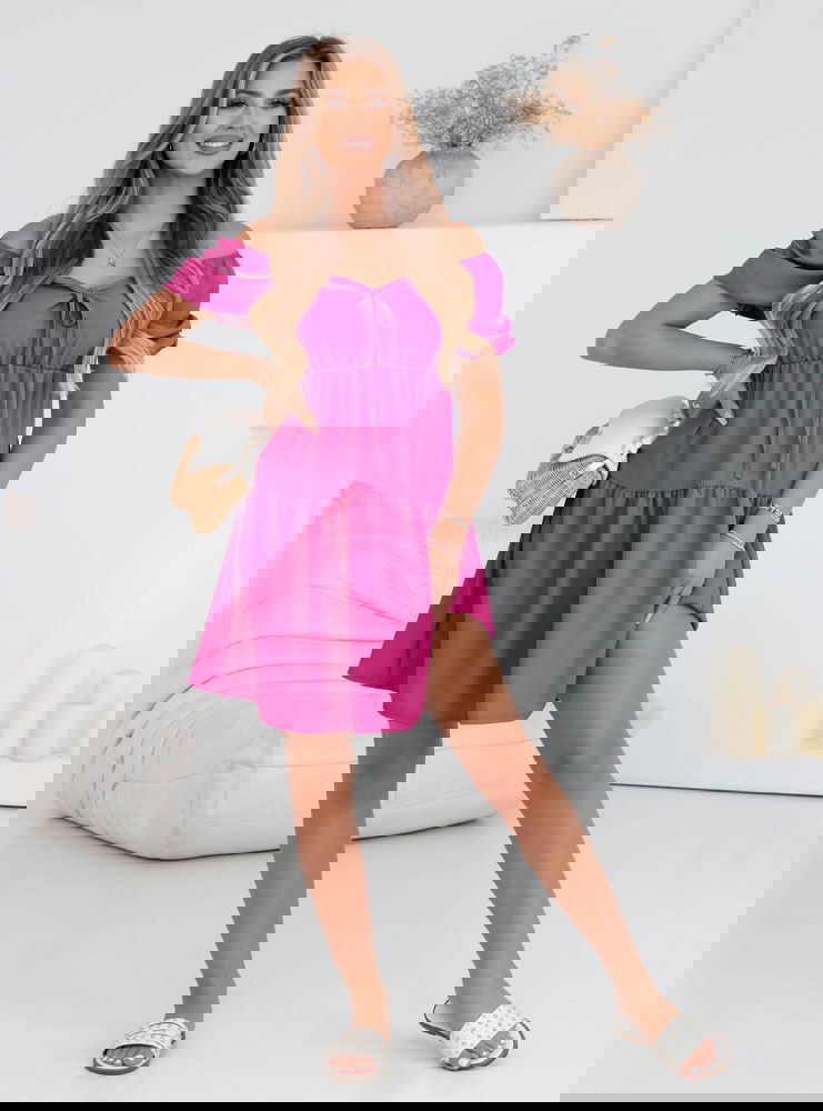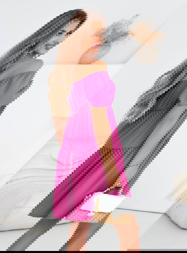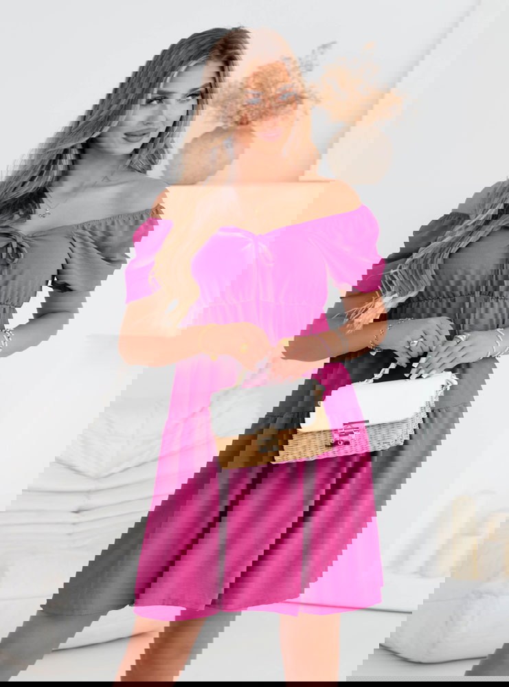 Sukienka mini z wiązanym dekoltem Tahyna - fuksja to propozycja pełna energii, kobiecości i letniego uroku. Ten intensywny odcień przyciąga wzrok i sprawia, że cała stylizacja nabiera charakteru. Krój typu hiszpanka pięknie eksponuje ramiona, a delikatne wiązanie na dekolcie dodaje całości romantycznego akcentu. Fason rozkloszowany, lekki i swobodny – idealny na ciepłe dni. Elastyczna talia podkreśla sylwetkę, ale jednocześnie daje komfort noszenia. Ta sukienka to połączenie dziewczęcego uroku z odważnym kolorem, który wyróżnia się na tle klasycznych barw. Idealna na wyjazd, do miasta czy na imprezę – sprawdza się zarówno na co dzień, jak i na specjalne okazje. Świetnie wygląda w ruchu, wirując subtelnie przy każdym kroku. Jej letni charakter daje wiele możliwości stylizacyjnych – od casualu po elegancję. Jeśli szukasz czegoś wyjątkowego, a jednocześnie łatwego do noszenia – właśnie ją znalazłaś.