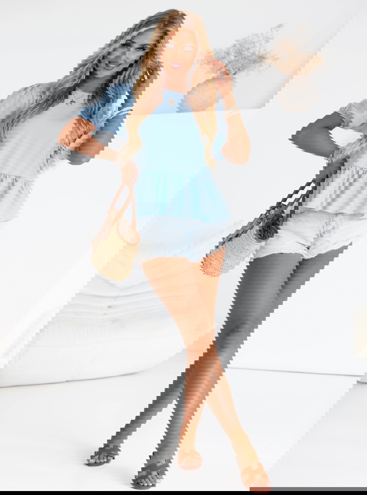 Błękitna bluzka z ozdobnym wiązaniem na plecach Kayleah to połączenie klasycznej elegancji i modnych detali, które przyciągają uwagę. Ten model to idealna propozycja dla kobiet, które lubią subtelne, a zarazem oryginalne rozwiązania w swojej garderobie. Czerń to kolor ponadczasowy, który pasuje niemal do wszystkiego, a ozdobne wiązanie na plecach dodaje całości niepowtarzalnego charakteru. Krótkie, lekko bufiaste rękawy nadają bluzce lekkości i dziewczęcego uroku. Delikatna falbanka na dole pięknie podkreśla talię i dodaje objętości. Bluzka Kayleah to świetny wybór na wiele okazji, od codziennych wyjść po bardziej formalne spotkania. Wygodny krój i wysokiej jakości tkanina zapewniają komfort noszenia przez cały dzień. Dzięki uniwersalnemu fasonowi bluzka łatwo dopasowuje się do różnych stylizacji.