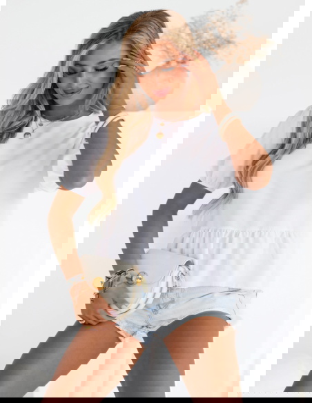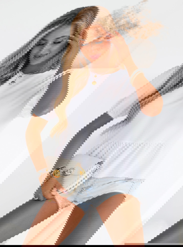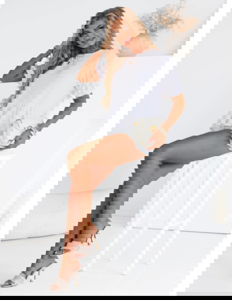 Biała bluzka z ozdobnym wiązaniem na plecach Kayleah to połączenie klasycznej elegancji i modnych detali, które przyciągają uwagę. Ten model to idealna propozycja dla kobiet, które lubią subtelne, a zarazem oryginalne rozwiązania w swojej garderobie. Czerń to kolor ponadczasowy, który pasuje niemal do wszystkiego, a ozdobne wiązanie na plecach dodaje całości niepowtarzalnego charakteru. Krótkie, lekko bufiaste rękawy nadają bluzce lekkości i dziewczęcego uroku. Delikatna falbanka na dole pięknie podkreśla talię i dodaje objętości. Bluzka Kayleah to świetny wybór na wiele okazji, od codziennych wyjść po bardziej formalne spotkania. Wygodny krój i wysokiej jakości tkanina zapewniają komfort noszenia przez cały dzień. Dzięki uniwersalnemu fasonowi bluzka łatwo dopasowuje się do różnych stylizacji.