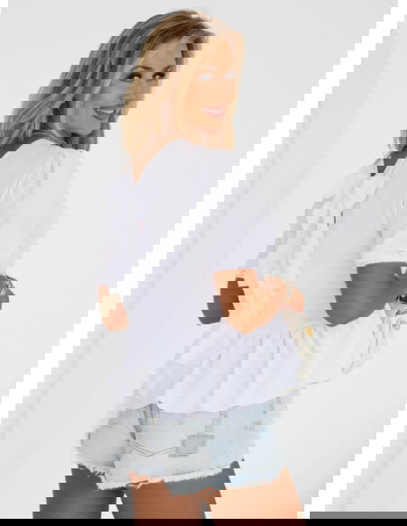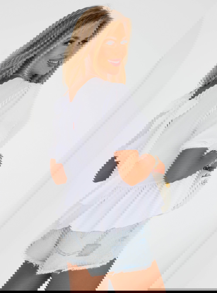 Błękitna bluzka z ozdobnym wiązaniem na plecach Kayleah to połączenie klasyki i modnego detalu. Dzięki niej stworzysz stylizacje pełne kobiecego uroku i oryginalności. Lekka falbanka i bufiaste rękawy dodają jej delikatności. Model jest wygodny i uniwersalny, dzięki czemu sprawdzi się na wiele okazji.