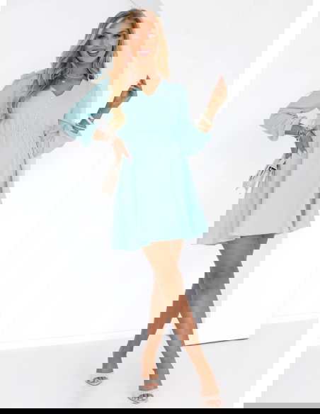 Miętowa muślinowa rozkloszowana sukienka mini Samilaa