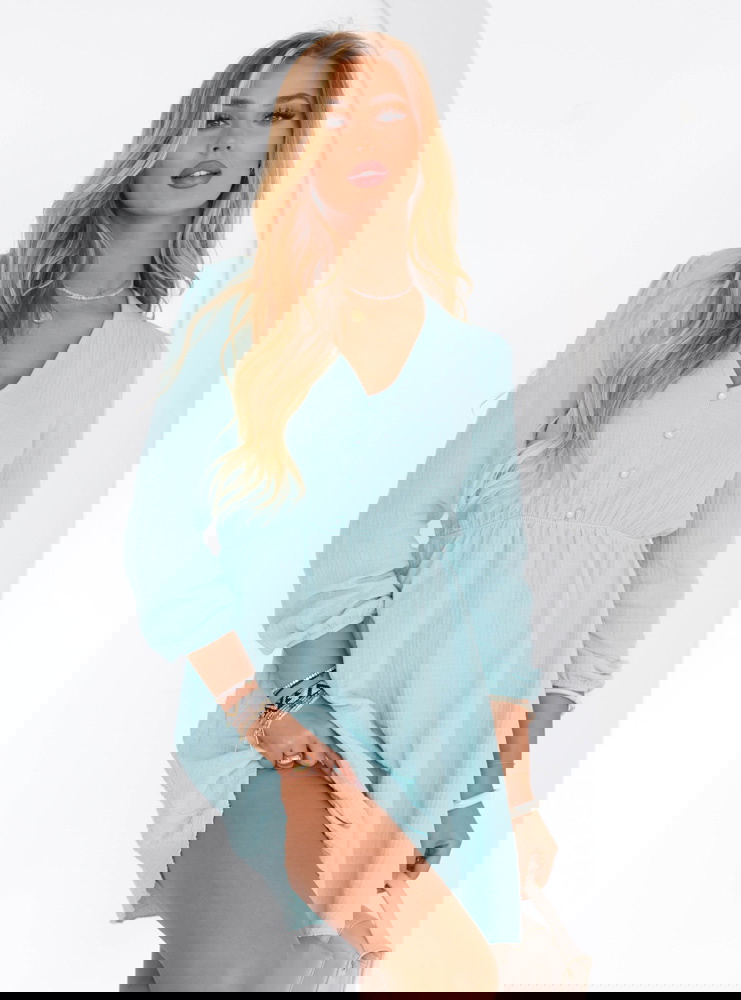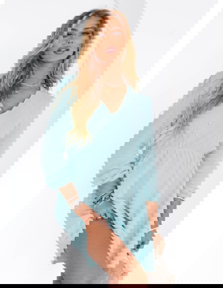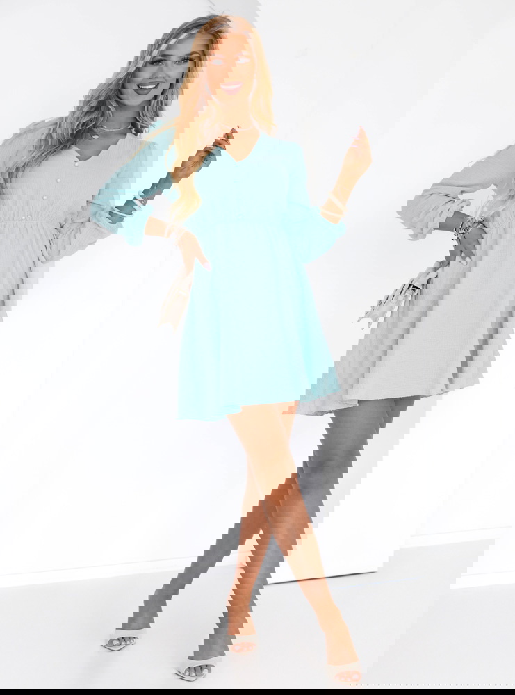 Miętowa muślinowa rozkloszowana sukienka mini Samilaa to wyjątkowa propozycja dla kobiet, które kochają lekkość i świeżość stylu. Ten model łączy w sobie delikatność muślinu z modnym, rozkloszowanym krojem, który dodaje lekkości i swobody ruchów. Sukienka prezentuje się niezwykle kobieco, a jej mini długość podkreśla nogi i dodaje seksapilu. Jasny, pastelowy odcień podkreśla wakacyjny charakter tego fasonu, idealnie wpisując się w ciepłe, słoneczne dni. Dekolt w serek oraz subtelne guziczki na przodzie nadają sukience elegancji i finezji. Długie rękawy z delikatnym marszczeniem na mankietach dopełniają całości, nadając lekkości i romantycznego sznytu.