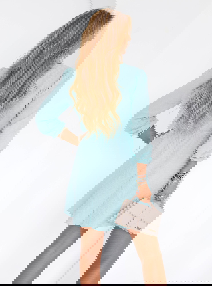 Miętowa muślinowa rozkloszowana sukienka mini Samilaa to połączenie klasyki i modnego detalu. Dzięki niej stworzysz stylizacje pełne kobiecego uroku i oryginalności. Lekka falbanka i bufiaste rękawy dodają jej delikatności. Model jest wygodny i uniwersalny, dzięki czemu sprawdzi się na wiele okazji.