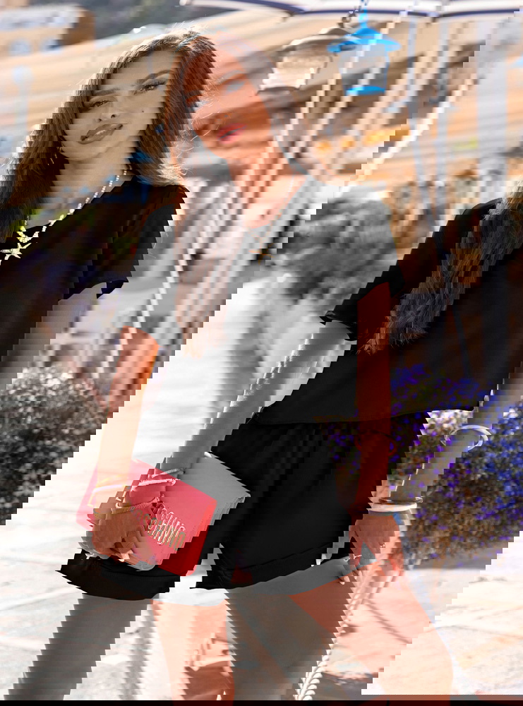 Czarny komplet koszulka i szorty Tamo to idealna propozycja na letnie dni, kiedy komfort i styl idą w parze. Ten zestaw to kwintesencja swobody i lekkości, które doceni każda kobieta szukająca modnych rozwiązań na co dzień. Doskonale wpisuje się w wakacyjny klimat, dodając świeżości każdej stylizacji. Doskonale sprawdzi się na plaży, w miejskich stylizacjach oraz podczas weekendowych wyjazdów. Jego uniwersalność pozwala na tworzenie różnorodnych zestawów dopasowanych do różnych aktywności. To zestaw, który łączy wygodę z modnym stylem. Świetny na ciepłe dni, gdy chcesz czuć się lekko i swobodnie.