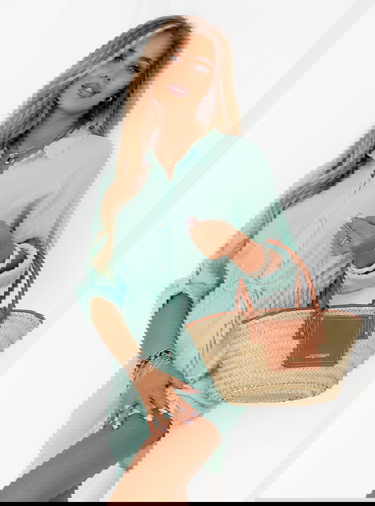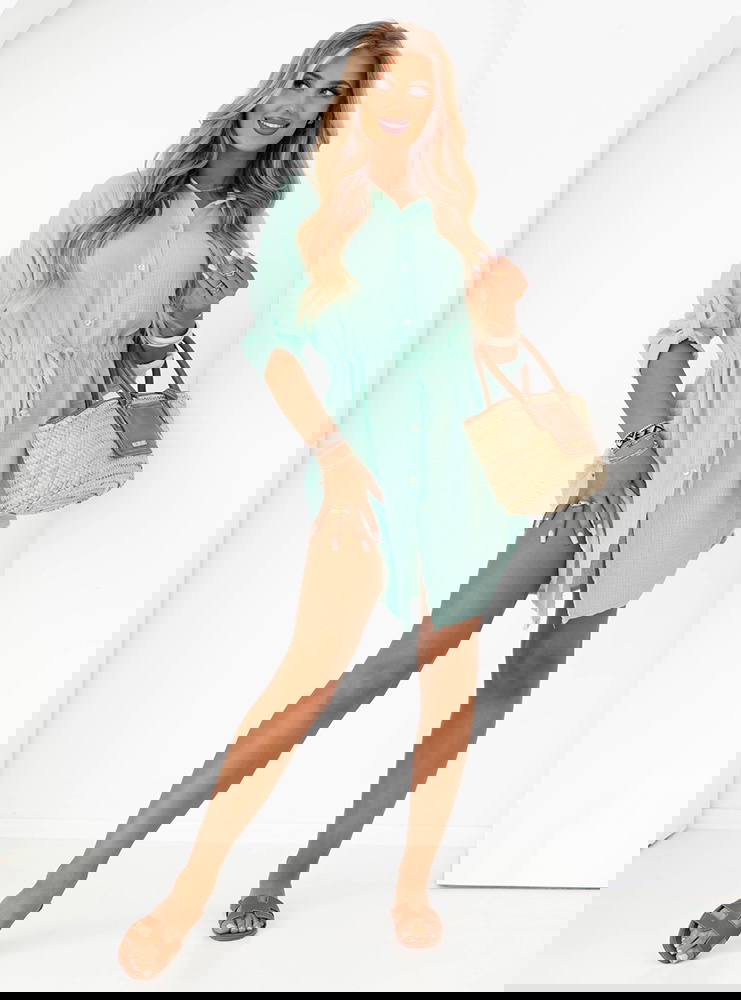 Miętowa sukienka zapinana na guziki Creusa to połączenie klasycznej elegancji z codzienną wygodą, które sprawdzi się w wielu stylizacjach. Jej luźny, swobodny fason pozwala na komfort noszenia, a jednocześnie podkreśla kobiecość. Guziki z przodu dodają stylizacji charakteru i umożliwiają dowolne dopasowanie dekoltu. Rękawy można podwinąć, co nadaje sukience lekkości i casualowego stylu. Kreacja ta doskonale sprawdzi się zarówno na co dzień, jak i podczas mniej formalnych spotkań. Uniwersalny fason pozwala na łatwe komponowanie z dodatkami, dzięki czemu za każdym razem możesz wyglądać inaczej. Idealna dla kobiet ceniących swobodę, ale też modny wygląd.