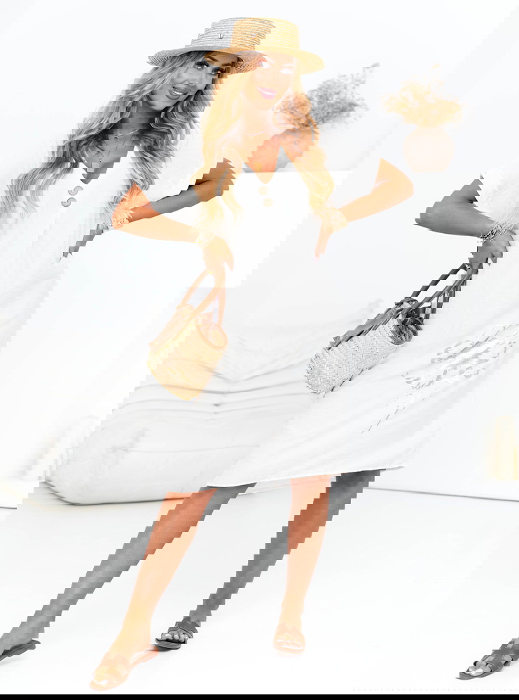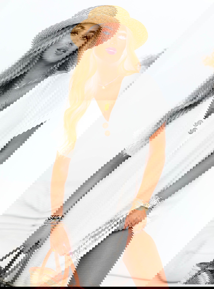 Biała sukienka oversize z ozdobnymi guzikami Camellia to połączenie wygody i modnego designu, które sprawdzi się w wielu codziennych sytuacjach. Luźny fason i ozdobne guziki przy dekolcie tworzą unikalny look, który przyciąga uwagę. To sukienka idealna na lato, która zapewnia komfort noszenia i stylowy wygląd. Uniwersalna i łatwa do stylizowania, sprawi, że każda Twoja stylizacja nabierze lekkości.