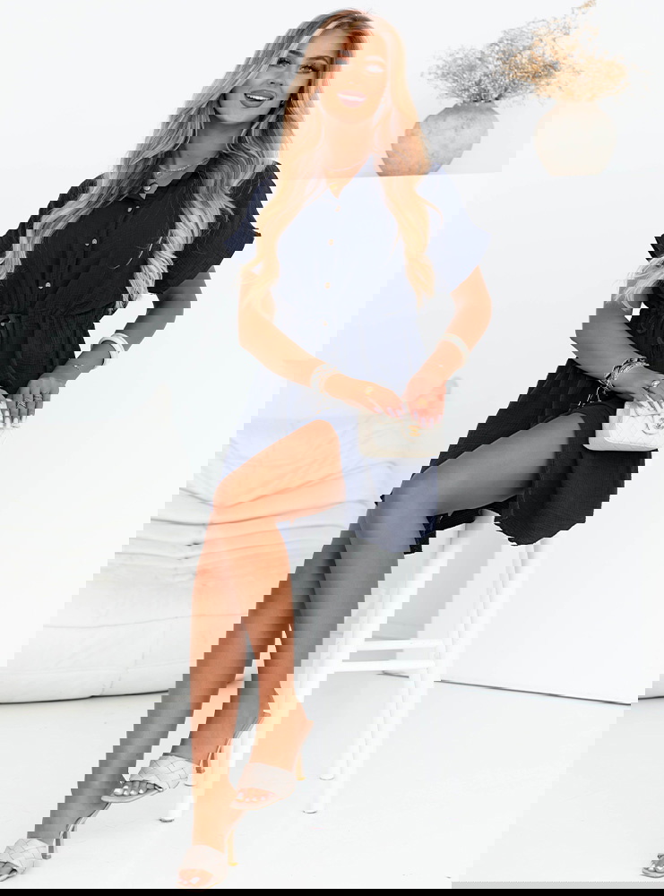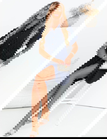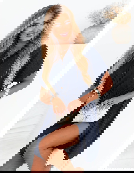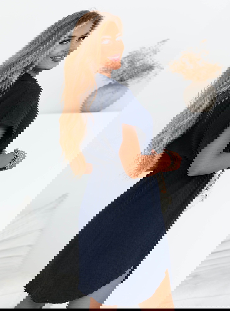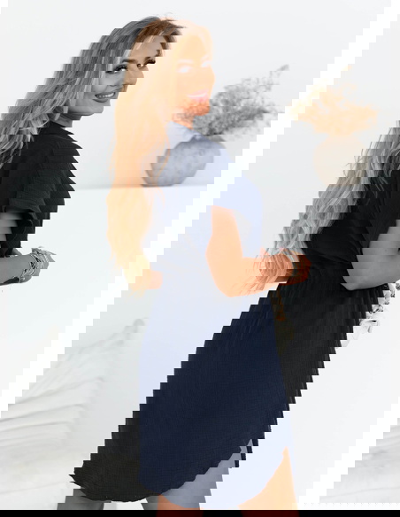 Granatowa sukienka zapinana na guziki Nyree to idealna opcja na ciepłe dni, łącząca w sobie styl i wygodę. Wykonana z lekkiego, przewiewnego materiału, jest doskonałym wyborem na lato, zapewniając komfort noszenia przez cały dzień. Sukienka ma klasyczny fason, zapinana jest na guziki z przodu, co dodaje jej subtelności. Wiązanie w talii pozwala na idealne dopasowanie, podkreślając sylwetkę i dodając jej kobiecego charakteru. Krótkie rękawy oraz kołnierzyk to detale, które nadają sukience elegancji i casualowego stylu. Sukienka to klasyka, która nigdy nie wychodzi z mody i sprawdzi się w wielu letnich stylizacjach. Doskonała na spacer, spotkania ze znajomymi czy na letnie wyjazdy.