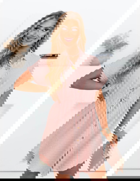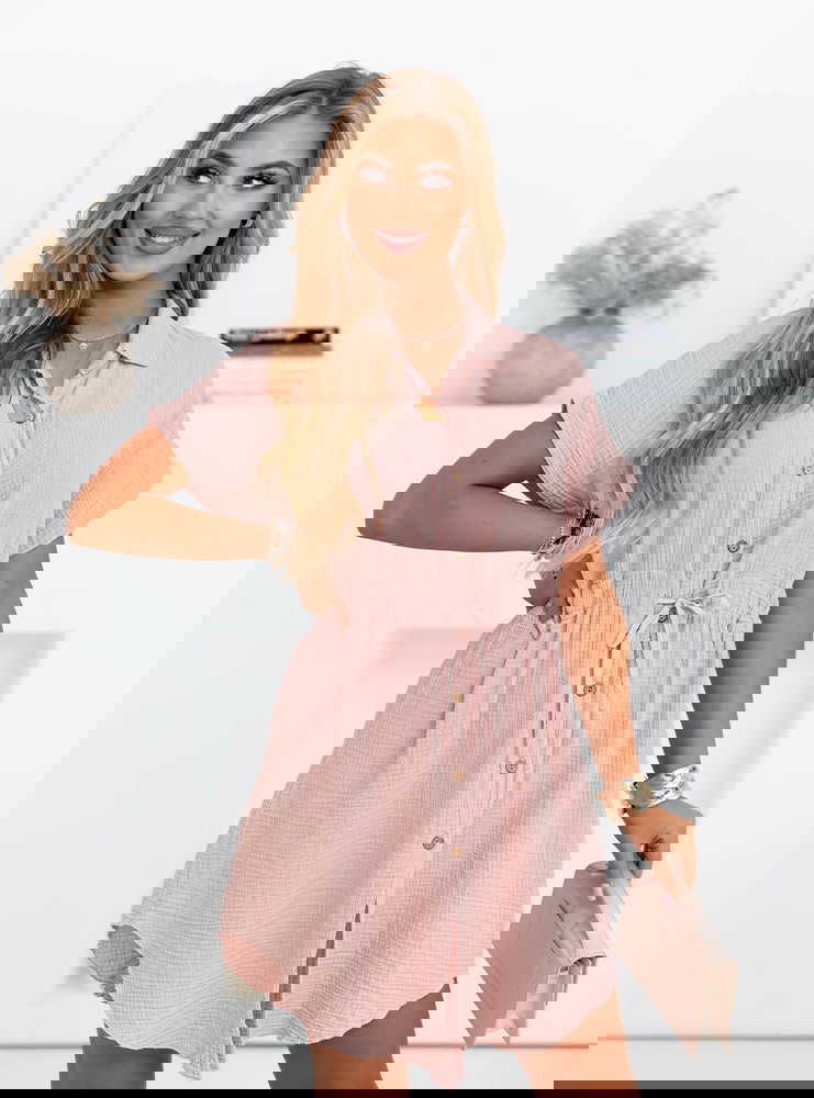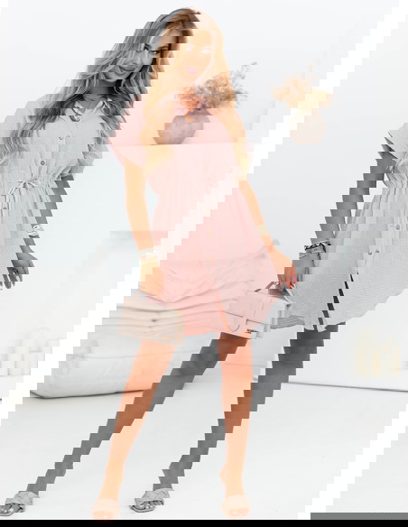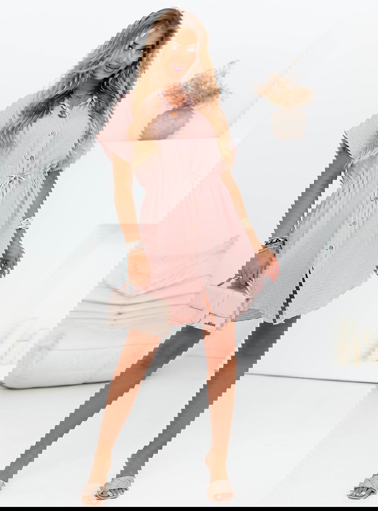 Sukienka zapinana na guziki Nyree - brudny róż to idealna opcja na ciepłe dni, łącząca w sobie styl i wygodę. Wykonana z lekkiego, przewiewnego materiału, jest doskonałym wyborem na lato, zapewniając komfort noszenia przez cały dzień. Sukienka ma klasyczny fason, zapinana jest na guziki z przodu, co dodaje jej subtelności. Wiązanie w talii pozwala na idealne dopasowanie, podkreślając sylwetkę i dodając jej kobiecego charakteru. Krótkie rękawy oraz kołnierzyk to detale, które nadają sukience elegancji i casualowego stylu. Sukienka to klasyka, która nigdy nie wychodzi z mody i sprawdzi się w wielu letnich stylizacjach. Doskonała na spacer, spotkania ze znajomymi czy na letnie wyjazdy.