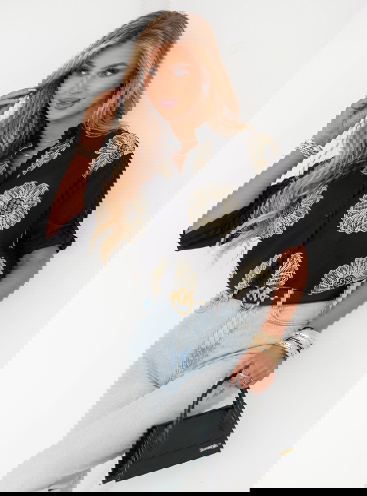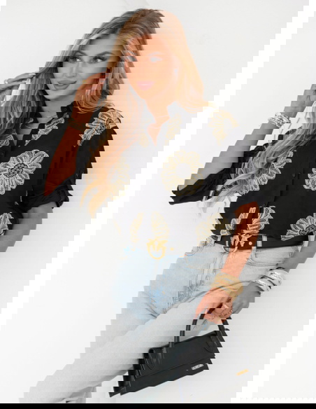 Czarna koszula w kwiaty Laurelei to połączenie elegancji i romantyzmu w jednym. Delikatny materiał w klasycznym białym kolorze doskonale komponuje się z subtelnym, ale wyrazistym haftem kwiatowym w odcieniach żółci. To idealny wybór dla kobiet, które cenią sobie ponadczasową elegancję z nutą oryginalności. Koszula ma klasyczny krój, ale dzięki zawiązaniu na dole zyskuje modny, lekko casualowy charakter. Dzięki swojej prostocie, koszula doskonale komponuje się zarówno z eleganckimi, jak i bardziej swobodnymi stylizacjami. Jest świetnym wyborem na wiosenne i letnie dni, dodając świeżości i stylu każdemu zestawowi.