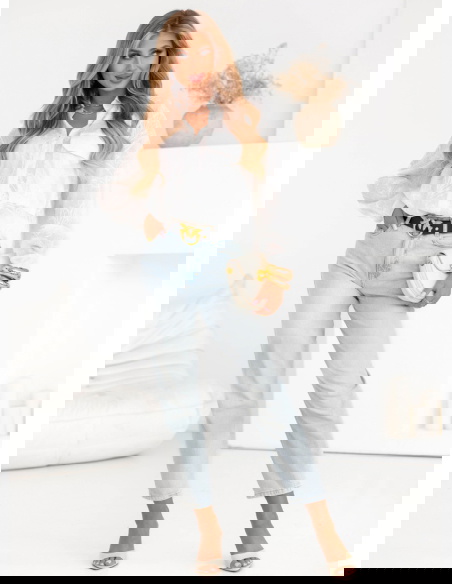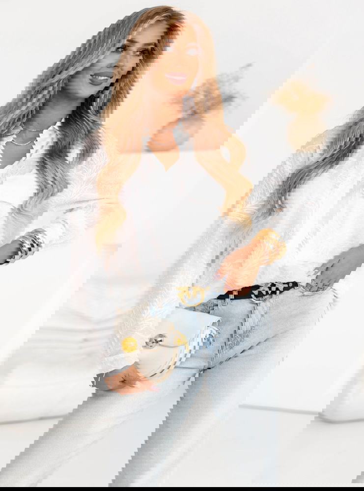 Biała koszula z ozdobnym haftem Lawona to elegancka propozycja, która z powodzeniem wpasowuje się w codzienne stylizacje. Jej ozdobny haft dodaje jej subtelnego, lecz wyrazistego charakteru, który przyciąga uwagę. Koszula została uszyta z lekkiego materiału, dzięki czemu jest idealnym wyborem na wiosnę i lato, gdy liczy się zarówno styl, jak i komfort. Jej klasyczny krój sprawia, że pasuje do wielu stylizacji, zarówno casualowych, jak i nieco bardziej eleganckich. Zawiązanie z przodu to ciekawy element, który dodaje całości lekkości i modowego sznytu. Lawona to świetny wybór, gdy chcesz wyglądać kobieco i modnie, nie rezygnując z wygody.