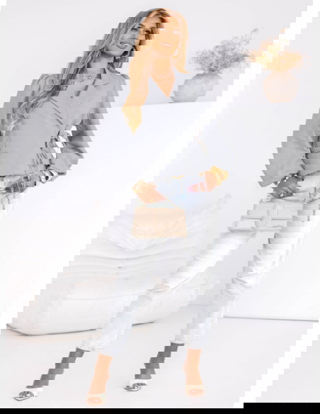 Szara marynarka z wiązaniem Mallory to propozycja, która łączy w sobie elegancję i wygodę. Dzięki wiązaniu w talii, doskonale podkreśla sylwetkę, jednocześnie zapewniając komfort noszenia. Klasyczny krój, długie rękawy oraz uniwersalny kolor sprawiają, że jest to model, który z łatwością wpisuje się w wiele różnych stylizacji.