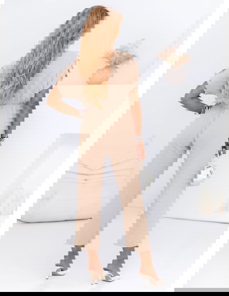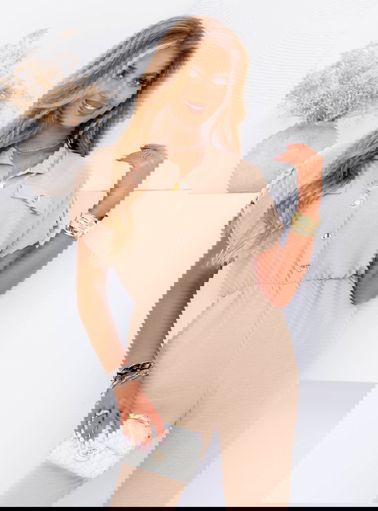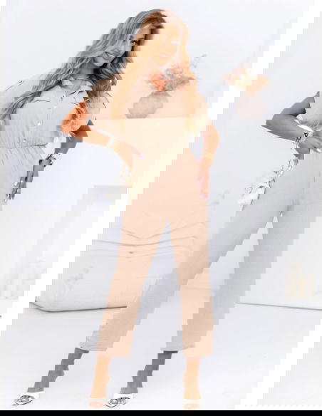 Beżowy kombinezon z guzikami na krótki rękaw Kensey