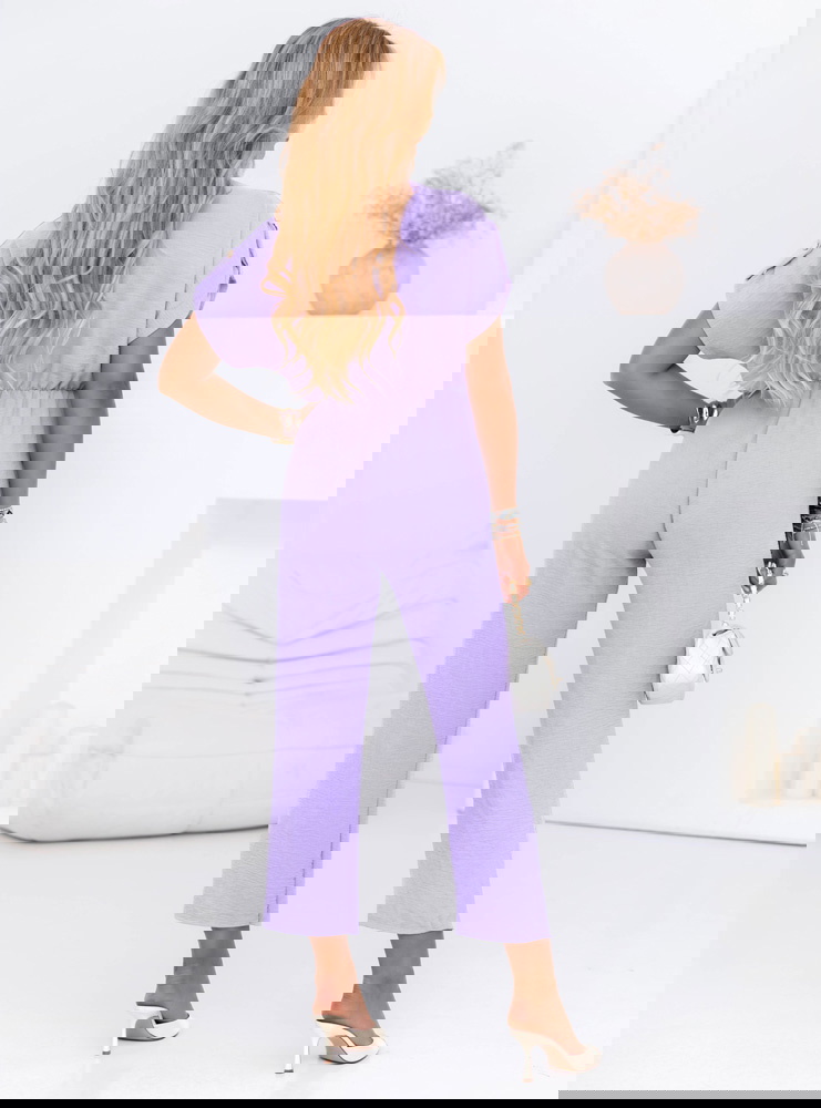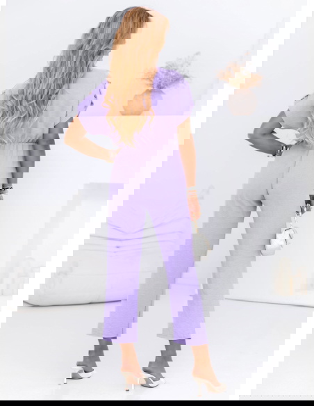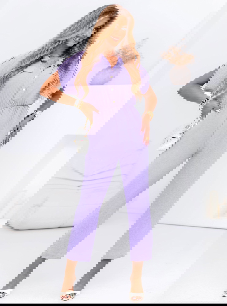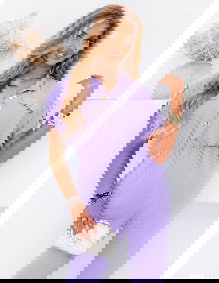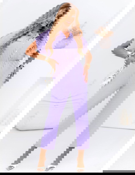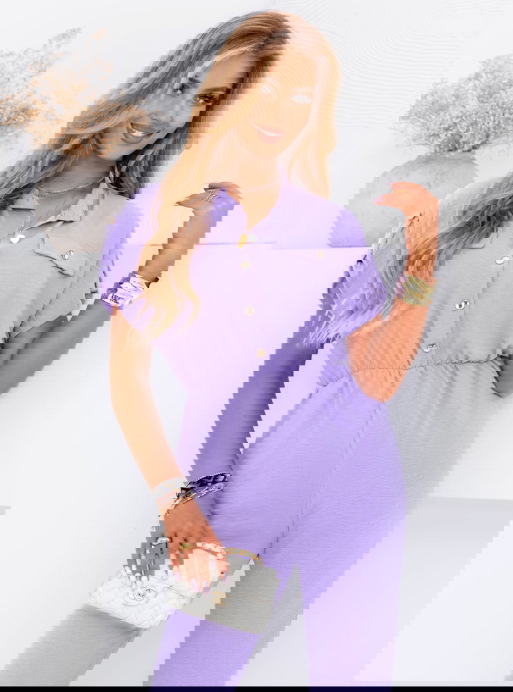 Liliowy kombinezon z guzikami na krótki rękaw Kensey