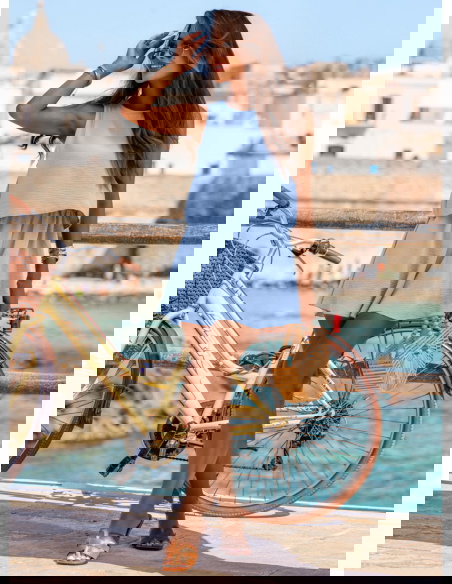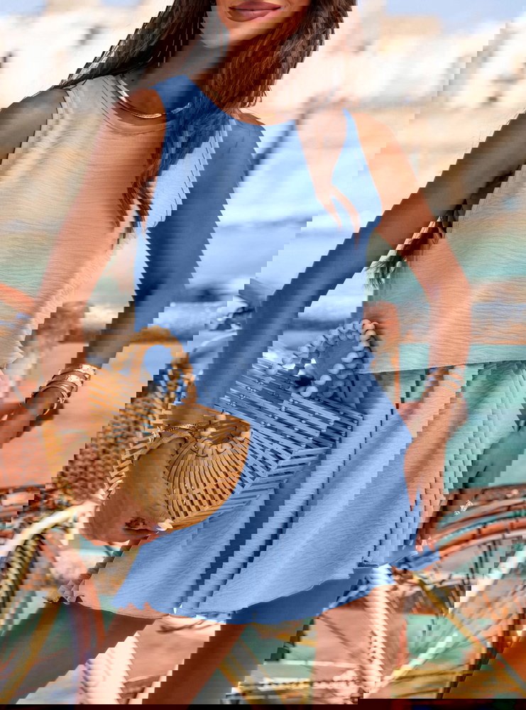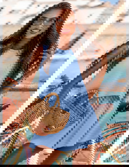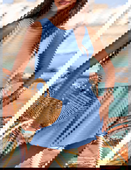 Błękitny komplet bluzka i spodenki Kammilma to świetny wybór na spacery nad morzem, wakacyjne zwiedzanie czy leniwe popołudnie w mieście. Zestaw idealnie sprawdzi się na urlopie – jest lekki, wygodny i stylowy. Można go zestawić z sandałkami, klapkami, a nawet sportowymi butami – wszystko zależy od okazji. Wystarczy dodać słomkową torbę i okulary przeciwsłoneczne, by stworzyć gotowy look na lato. W kolekcji Dolce Vita ten komplet to klasyka, którą warto mieć pod ręką na każdą letnią przygodę.