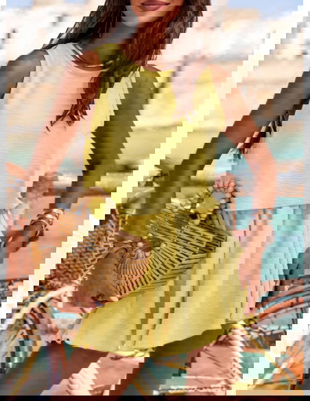 Komplet bluzka i spodenki Kammilma - masełkowy to kwintesencja letniej świeżości i kobiecego luzu. Jego delikatny, ciepły odcień przywołuje na myśl promienie słońca i beztroskie poranki w śródziemnomorskim klimacie. To zestaw, który nie tylko wygląda stylowo, ale też zapewnia pełen komfort w upalne dni. Luźna bluzka pięknie układa się na sylwetce, a krótkie, lekko rozkloszowane spodenki dodają lekkości i dziewczęcego wdzięku. Dzięki swojej formie, komplet świetnie wpisuje się w codzienne, letnie stylizacje – wystarczy dodać wiklinową torebkę i ulubione okulary przeciwsłoneczne. Jego prostota to największa zaleta – daje Ci wolność w tworzeniu własnego stylu. Możesz go nosić razem, ale też osobno – miksując z innymi letnimi elementami garderoby. Kolor masełkowy działa jak naturalny rozświetlacz – subtelny, świeży, idealny na lato. To propozycja, która świetnie sprawdzi się na co dzień, ale również w podróży. W kolekcji Dolce Vita ten komplet zachwyca swoją lekkością i naturalnym wdziękiem.