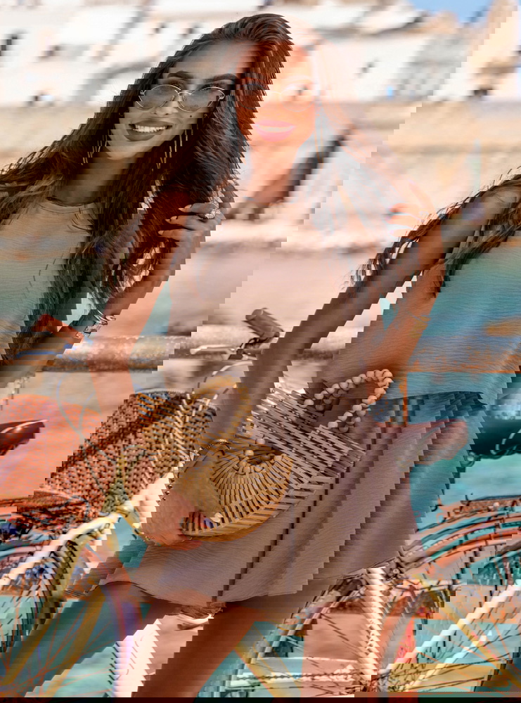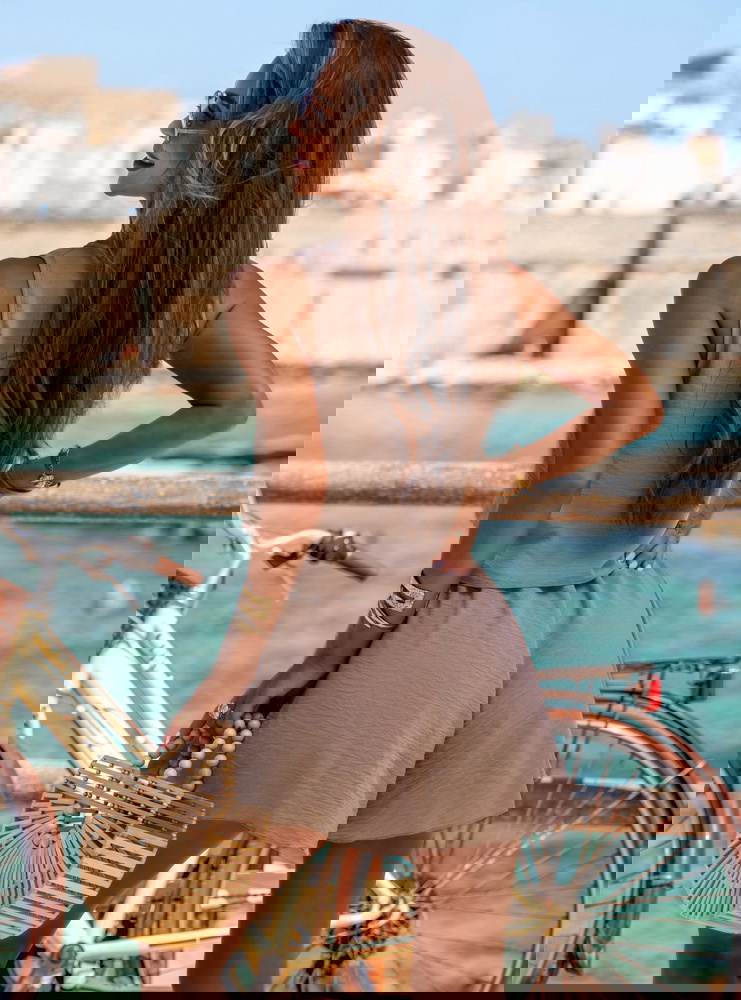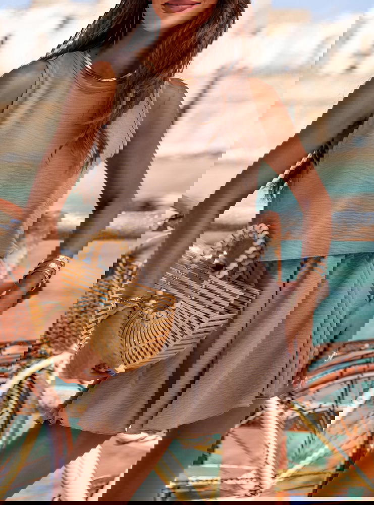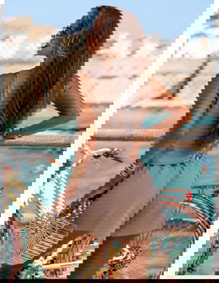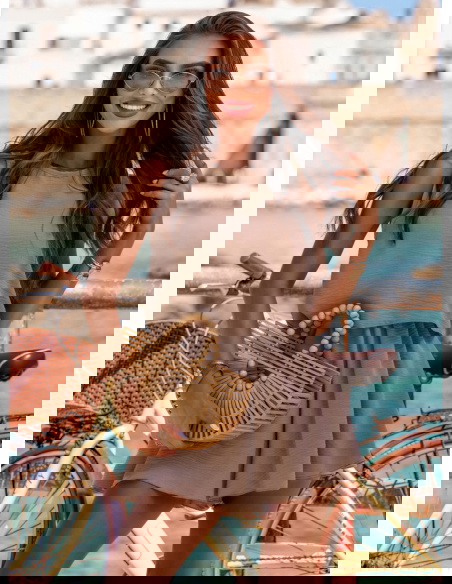 Komplet bluzka i spodenki Kammilma - mocha mousse to praktyczny i elegancki wybór na letnie dni. Jest przewiewny, miękko układa się na ciele i pasuje do wielu okazji. Jego naturalny kolor podkreśla opaleniznę i wpisuje się w klimat spokojnego, stylowego lata. W kolekcji Dolce Vita to model, który pozwala poczuć się swobodnie bez rezygnowania z kobiecego wyrazu. Możesz go nosić zarówno w codziennych stylizacjach, jak i podczas letnich wyjazdów. To komplet, który dobrze wygląda w ruchu i równie dobrze prezentuje się na zdjęciach z wakacji.