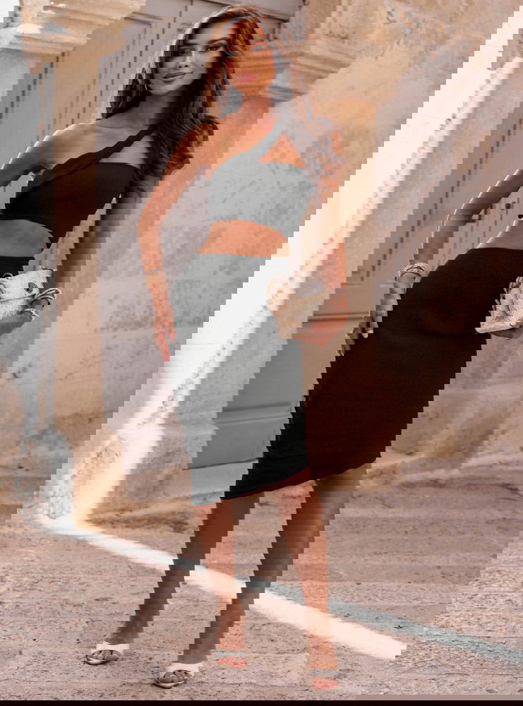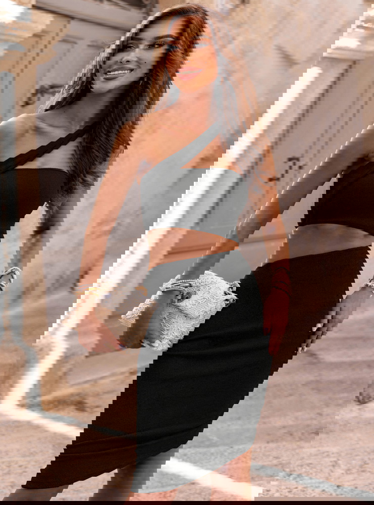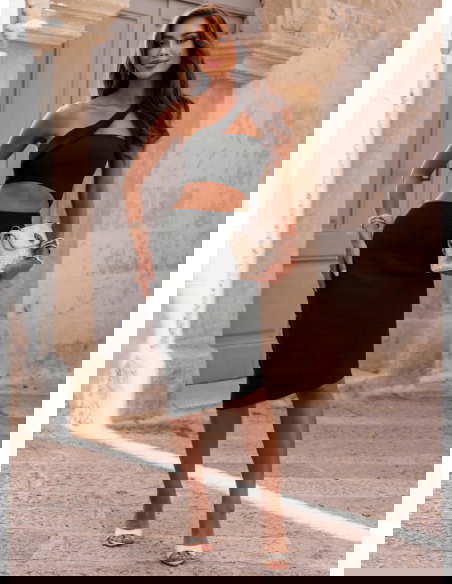 Czarna sukienka prążkowana z wycięciem Valchiria to must-have dla każdej kobiety, która lubi proste formy z charakterem. Jej krój jest dopracowany w każdym detalu, dzięki czemu wygląda świetnie na różnych sylwetkach. Prążkowana struktura dodaje lekkości i modnego akcentu. To model z kolekcji Dolce Vita, który idealnie wpisuje się w letni klimat – bez przesady, ale z nutą świeżości. Uniwersalna, ale niebanalna – sprawdzi się zawsze wtedy, gdy chcesz wyglądać dobrze bez wysiłku. Czarna sukienka w nowej odsłonie – bardziej kobieca, bardziej współczesna. Jeśli szukasz czegoś efektownego i wygodnego jednocześnie – to idealny wybór.