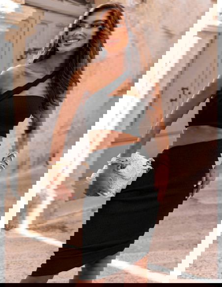 Czarna sukienka prążkowana z wycięciem Valchiria to propozycja dla kobiet, które kochają klasykę w nowoczesnym wydaniu. Jest elegancka, ale nie nudna. Ma w sobie nutę zmysłowości, ale bez przesady. Przyciąga wzrok prostą formą i wyrazistym detalem – asymetrycznym wykończeniem i wycięciem w talii. To model, który świetnie dopasowuje się do sylwetki, jednocześnie ją podkreślając. Czarny kolor nadaje całości charakteru i sprawia, że sukienka pasuje do wielu okazji. Stylowa i kobieca – to idealny balans między odważnym lookiem a codzienną wygodą. To jedna z tych sukienek, w których czujesz się pewnie już od pierwszego założenia. Zwraca uwagę, ale w bardzo gustowny sposób. Możesz z nią stworzyć wiele stylizacji – od casualowych po bardziej eleganckie.