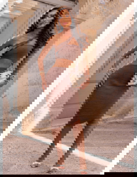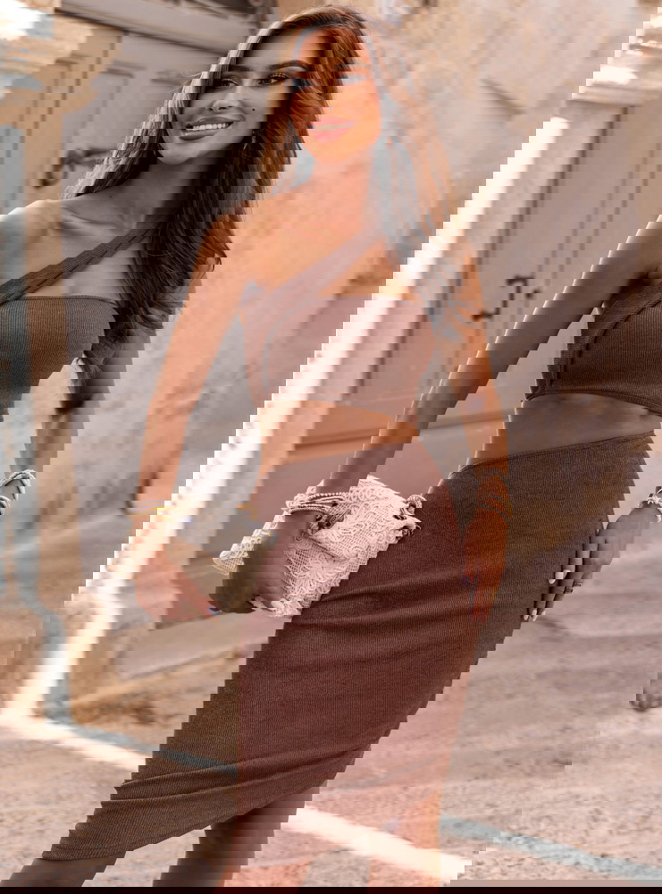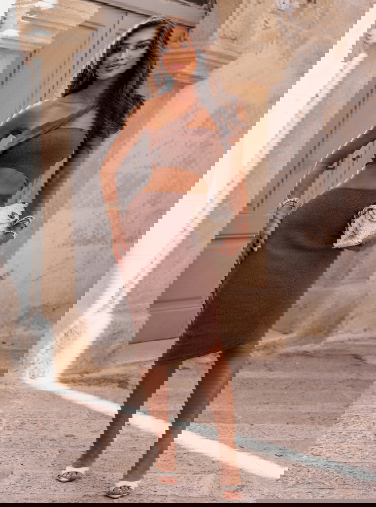 Sukienka prążkowana z wycięciem Valchiria - mocha mousse to synonim komfortu i stylu w jednym. Jej prosty, ale przemyślany krój sprawia, że staje się ponadczasowym elementem wakacyjnej garderoby. Może być bazą do wielu stylizacji – od bardzo casualowych po bardziej wieczorowe. Odcień mocha podkreśla opaleniznę i wpisuje się w modne, naturalne tony. To świetna opcja na lato, jeśli szukasz czegoś subtelnego, ale z efektem „wow”. Sukienka z kolekcji Dolce Vita idealnie oddaje klimat lekkości, kobiecości i stylowego luzu. Wybierz ją, jeśli chcesz czuć się swobodnie, a jednocześnie wyglądać wyjątkowo.