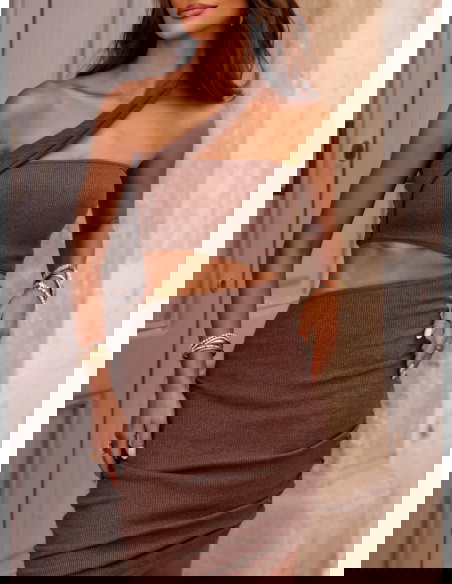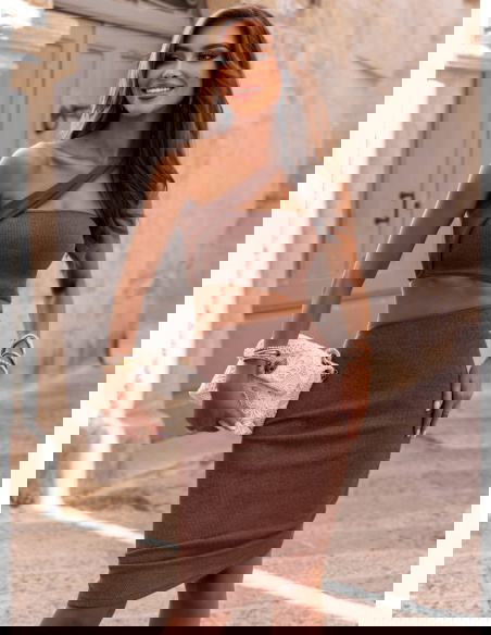 Sukienka prążkowana z wycięciem Valchiria - mocha mousse