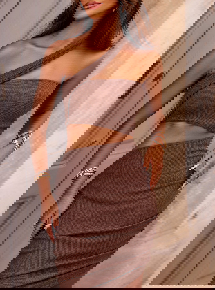 Sukienka prążkowana z wycięciem Valchiria - mocha mousse to model, który z łatwością przyciąga spojrzenia. Jej nowoczesna forma idzie w parze z kobiecym wdziękiem. Odcień mocha mousse to ciepła, elegancka alternatywa dla klasycznych beży – subtelna, a jednak wyróżniająca się. Krój z odkrytym ramieniem i wycięciem w talii nadaje całości lekkości i charakteru. Sukienka dopasowuje się do sylwetki, podkreślając jej atuty bez przesadnego efektu. To propozycja, która doskonale wpisuje się w letni styl kolekcji Dolce Vita – naturalna, świeża i wygodna. Jej niebanalny krój sprawia, że nie potrzebujesz wielu dodatków, by wyglądać stylowo. Możesz ją założyć zarówno na dzień, jak i wieczorem, zawsze czując się kobieco i pewnie. Ta sukienka udowadnia, że prostota potrafi być niezwykle efektowna. To idealny wybór dla kobiet, które lubią subtelnie podkreślić swój styl.