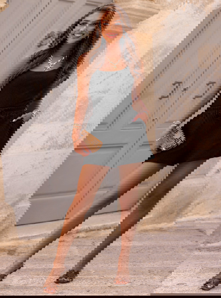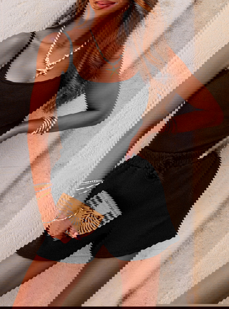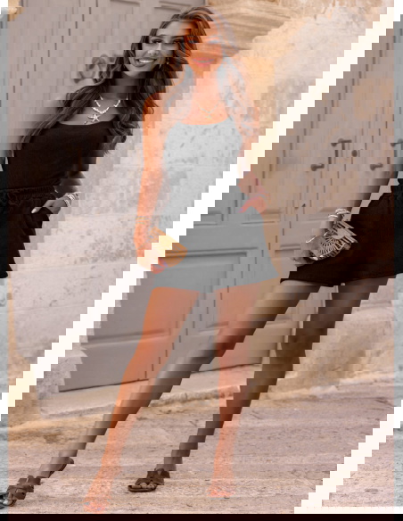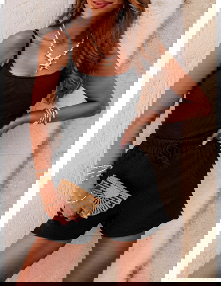 Czarny prążkowany komplet bluzka na ramiączkach + spodenki Zarella to coś więcej niż letni zestaw – to modowa baza, którą pokochasz za uniwersalność. Czerń sprawia, że wygląda bardziej wyrafinowanie niż typowe wakacyjne looki. Minimalistyczny krój sprawia, że łatwo go połączysz z innymi elementami garderoby. Będzie doskonale współgrał zarówno z klapkami, jak i espadrylami czy sneakersami. Kolekcja La Dolce Vita pokazuje, że mniej znaczy więcej – i ten komplet jest tego świetnym przykładem. Jeśli szukasz letniego looku, który możesz dopasować do siebie – właśnie go znalazłaś. Prosto, stylowo i wygodnie – po prostu idealnie na lato.